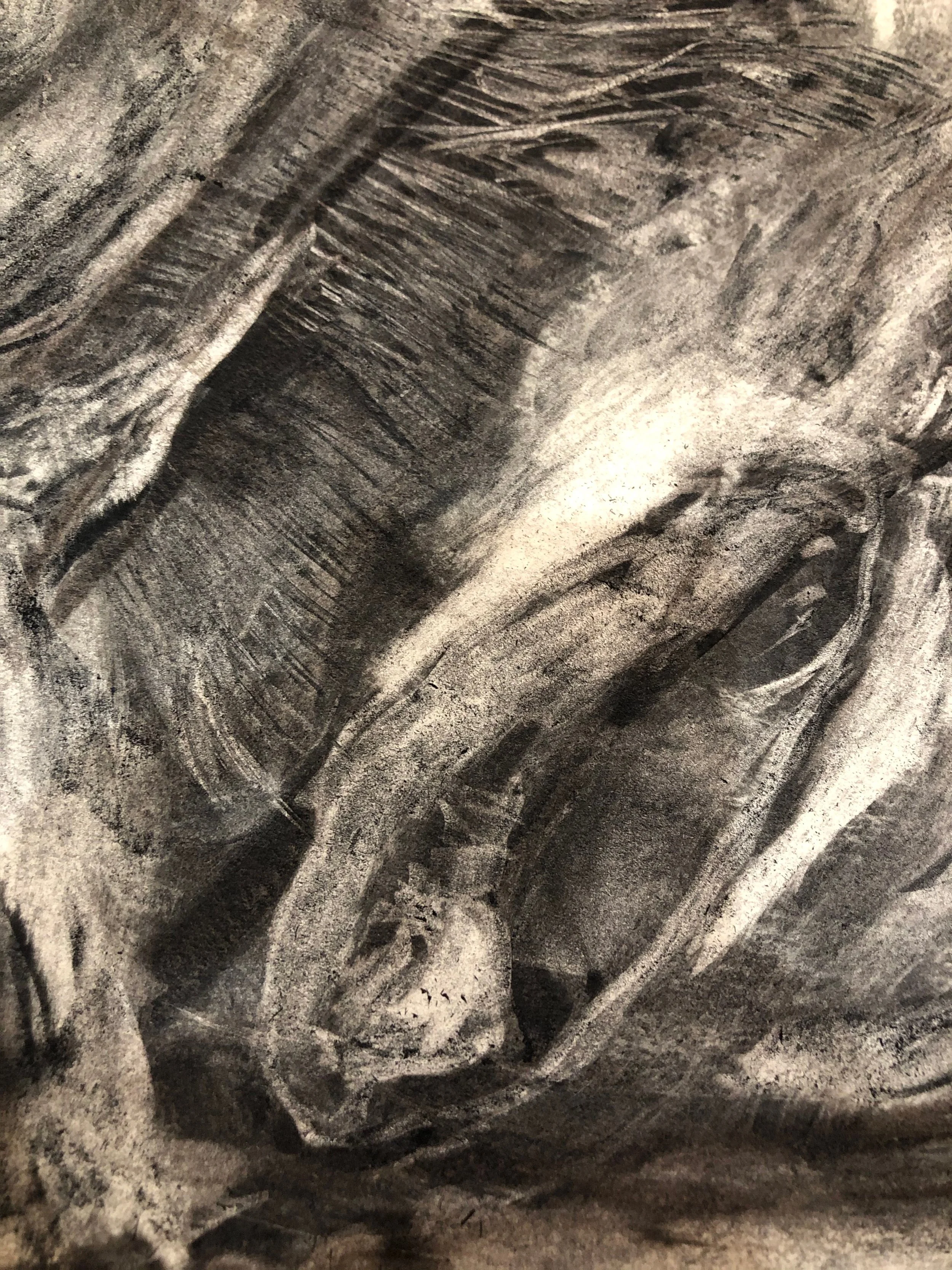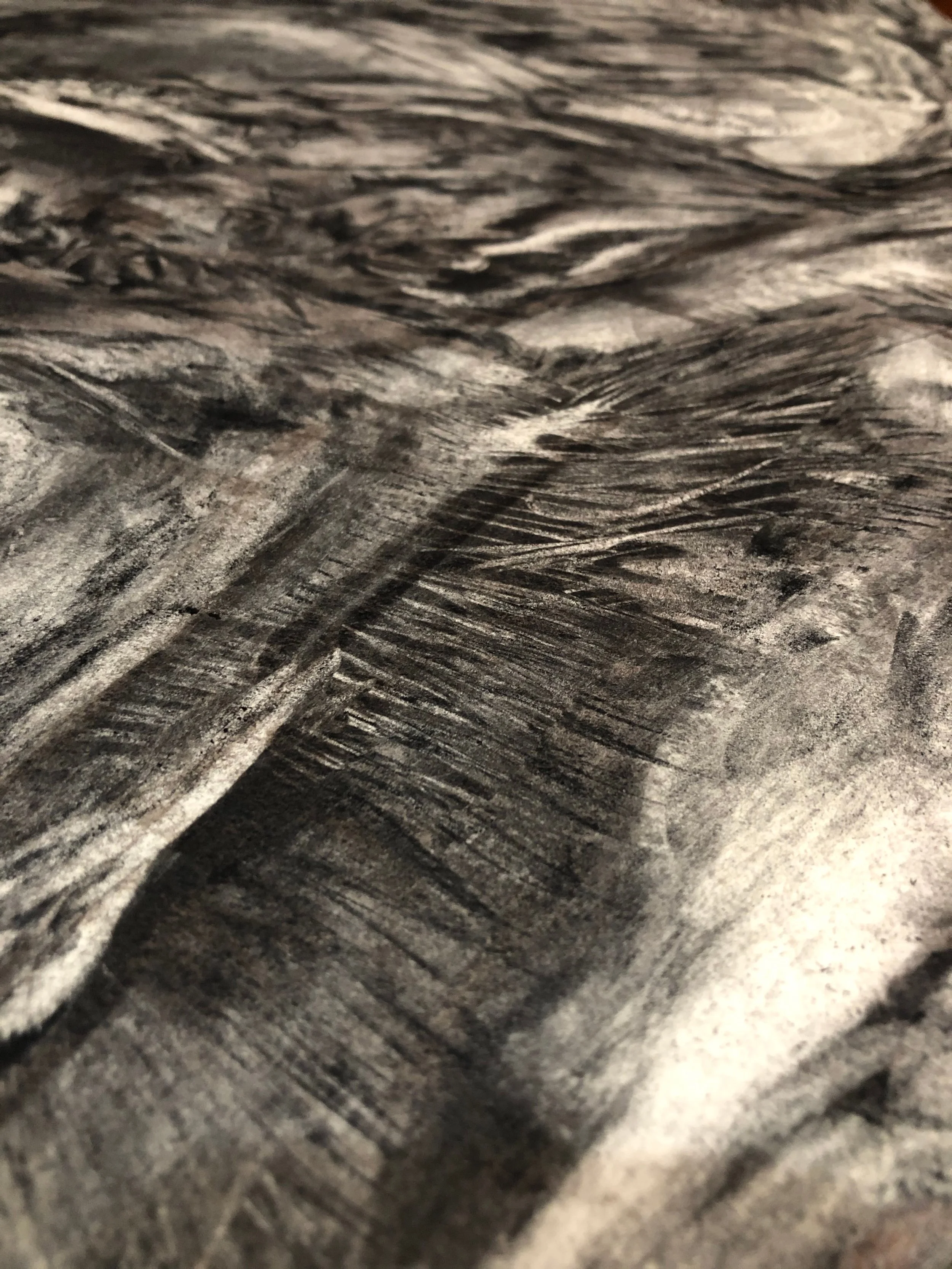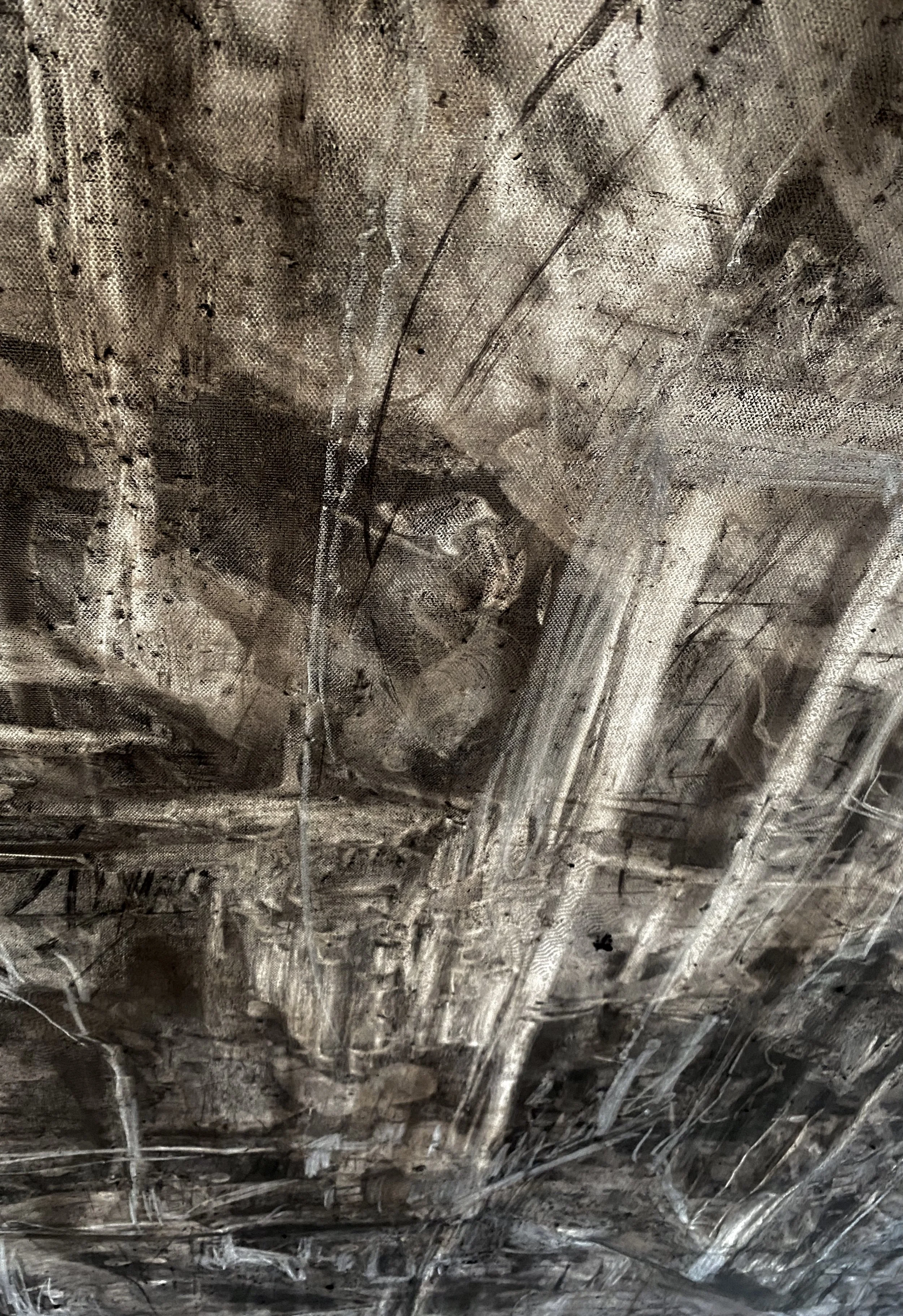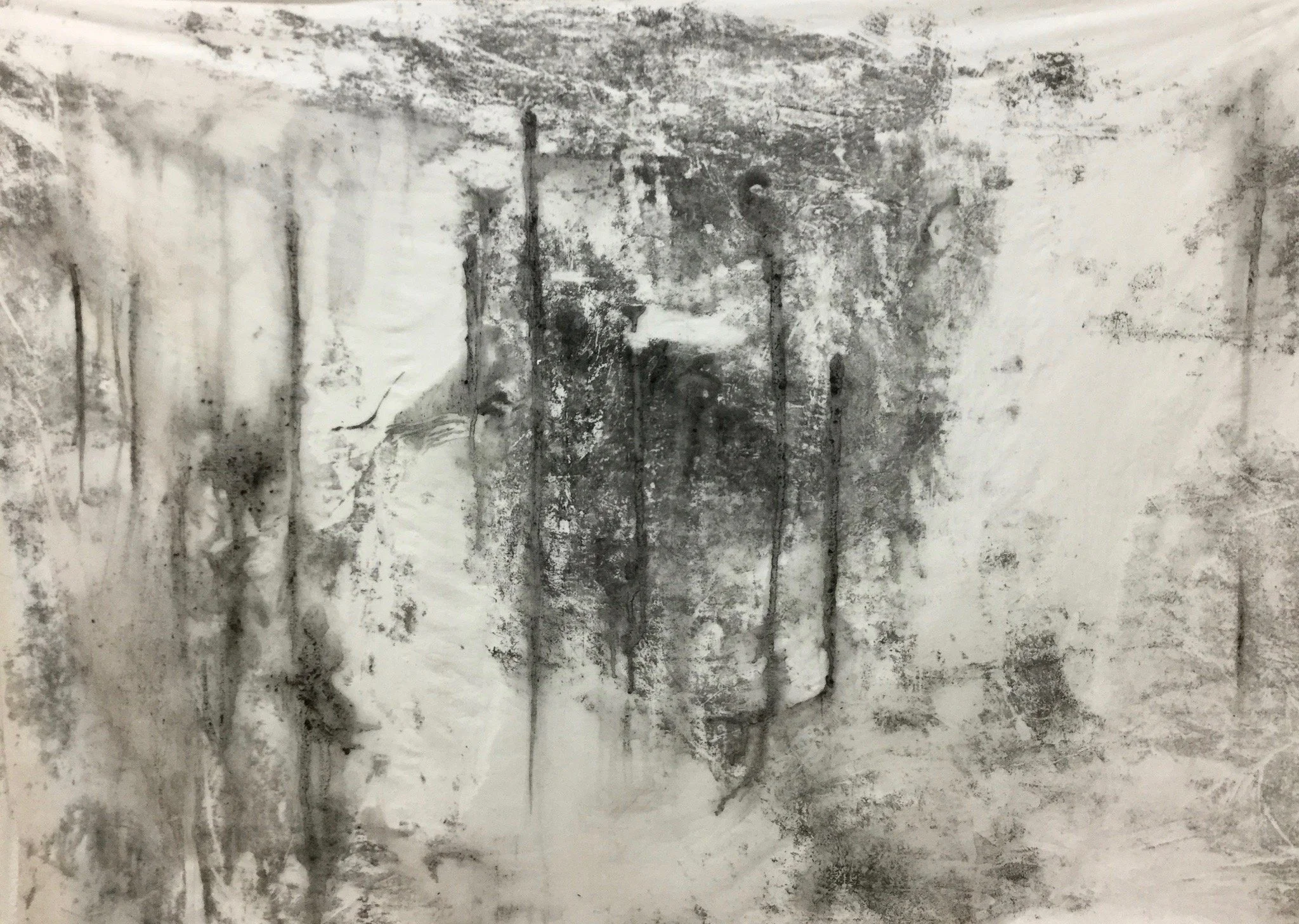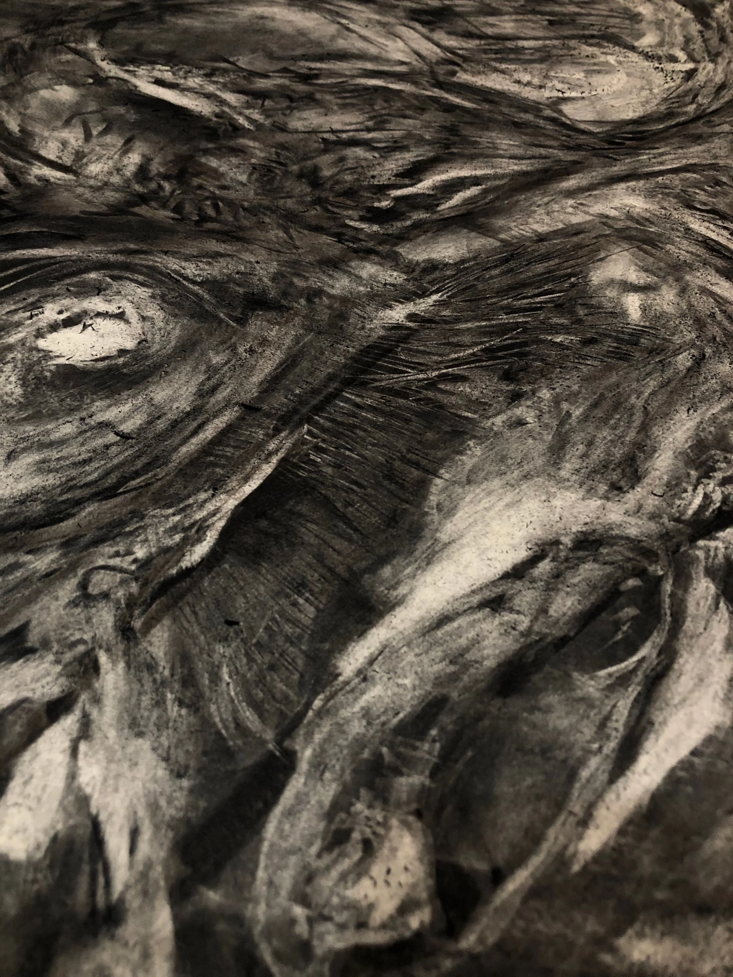 Charcoal, rice glue, and water on fabric ~24”x30”