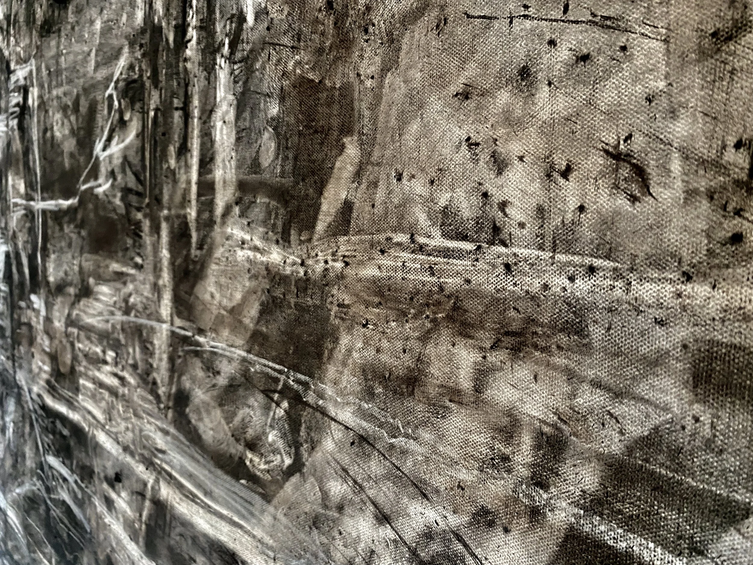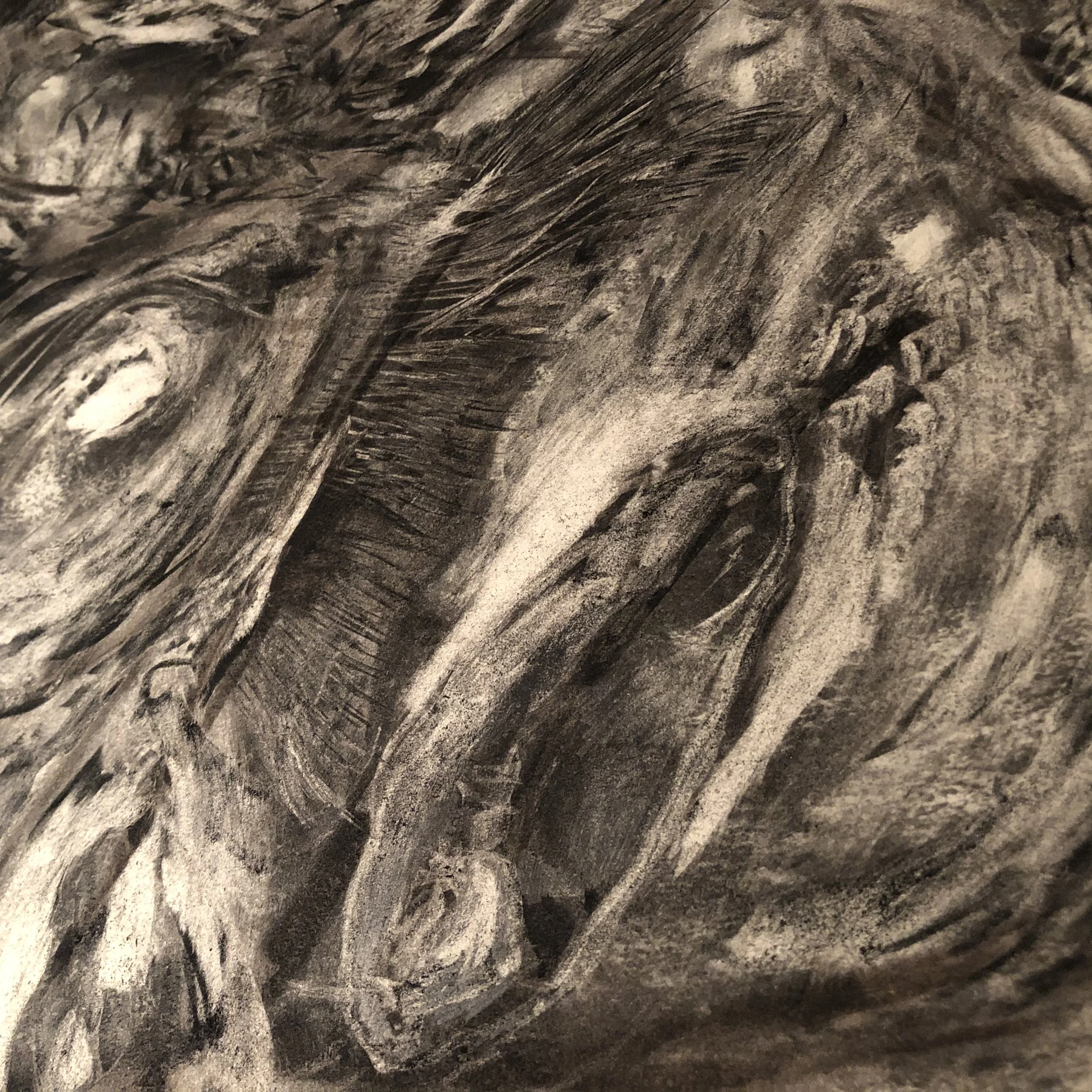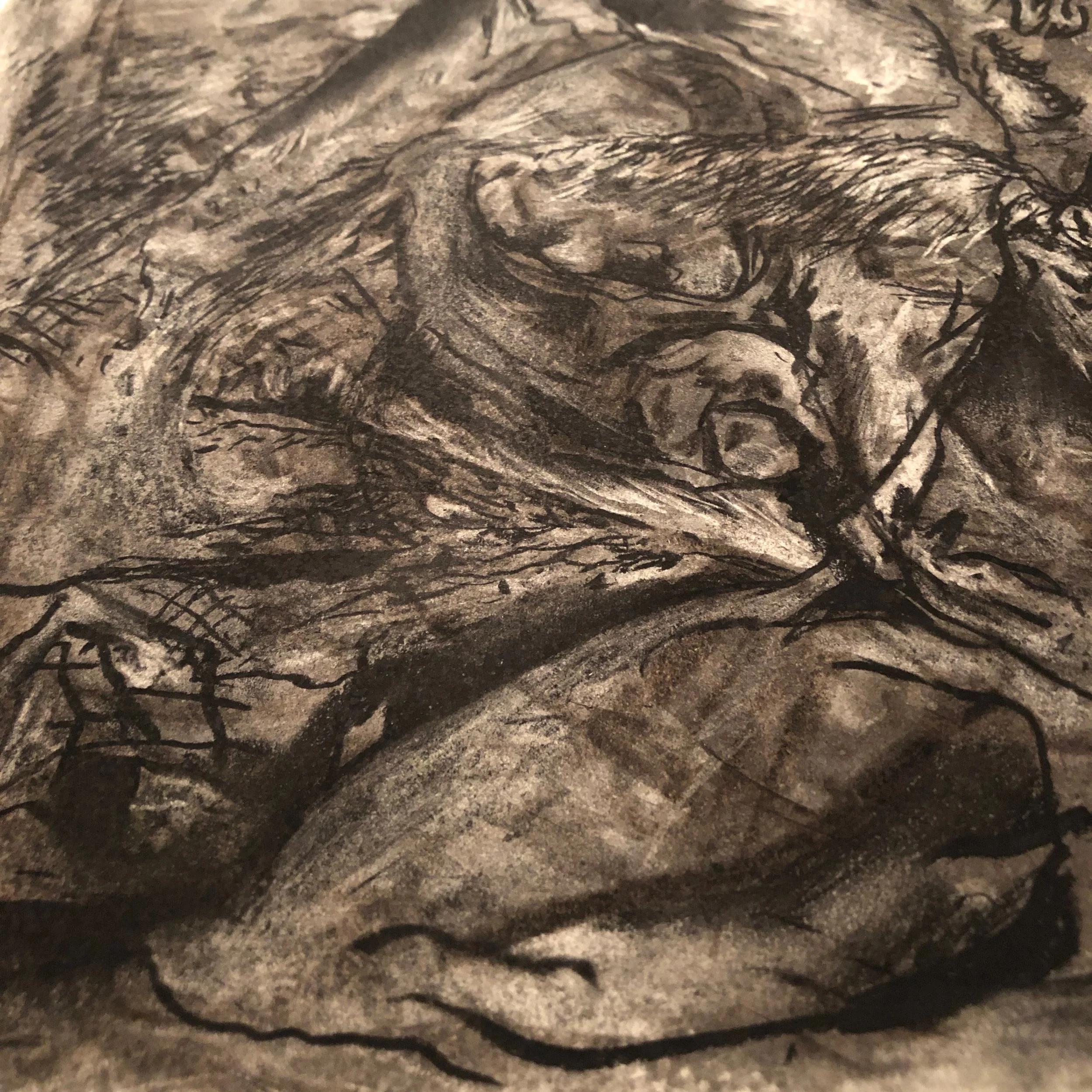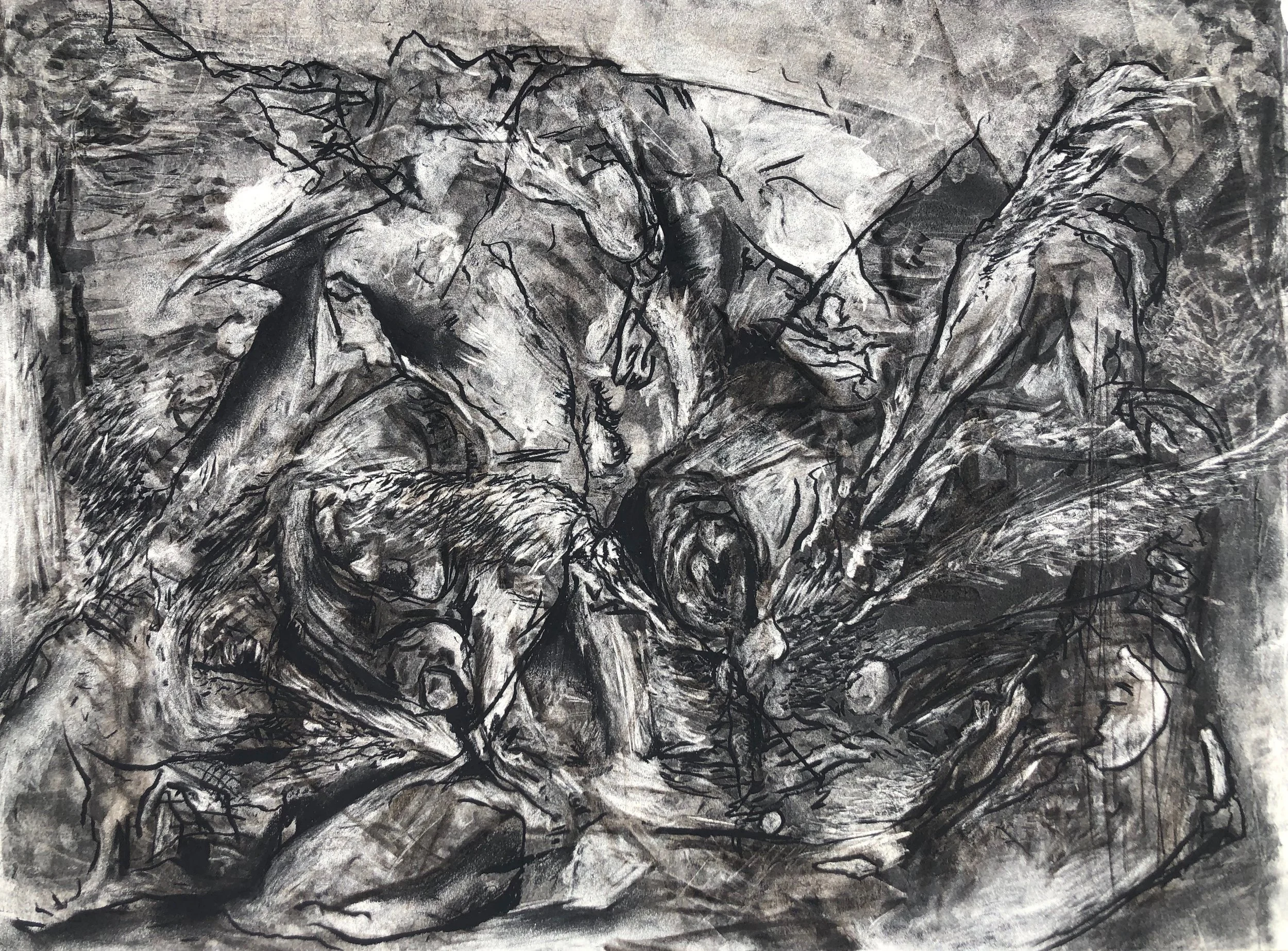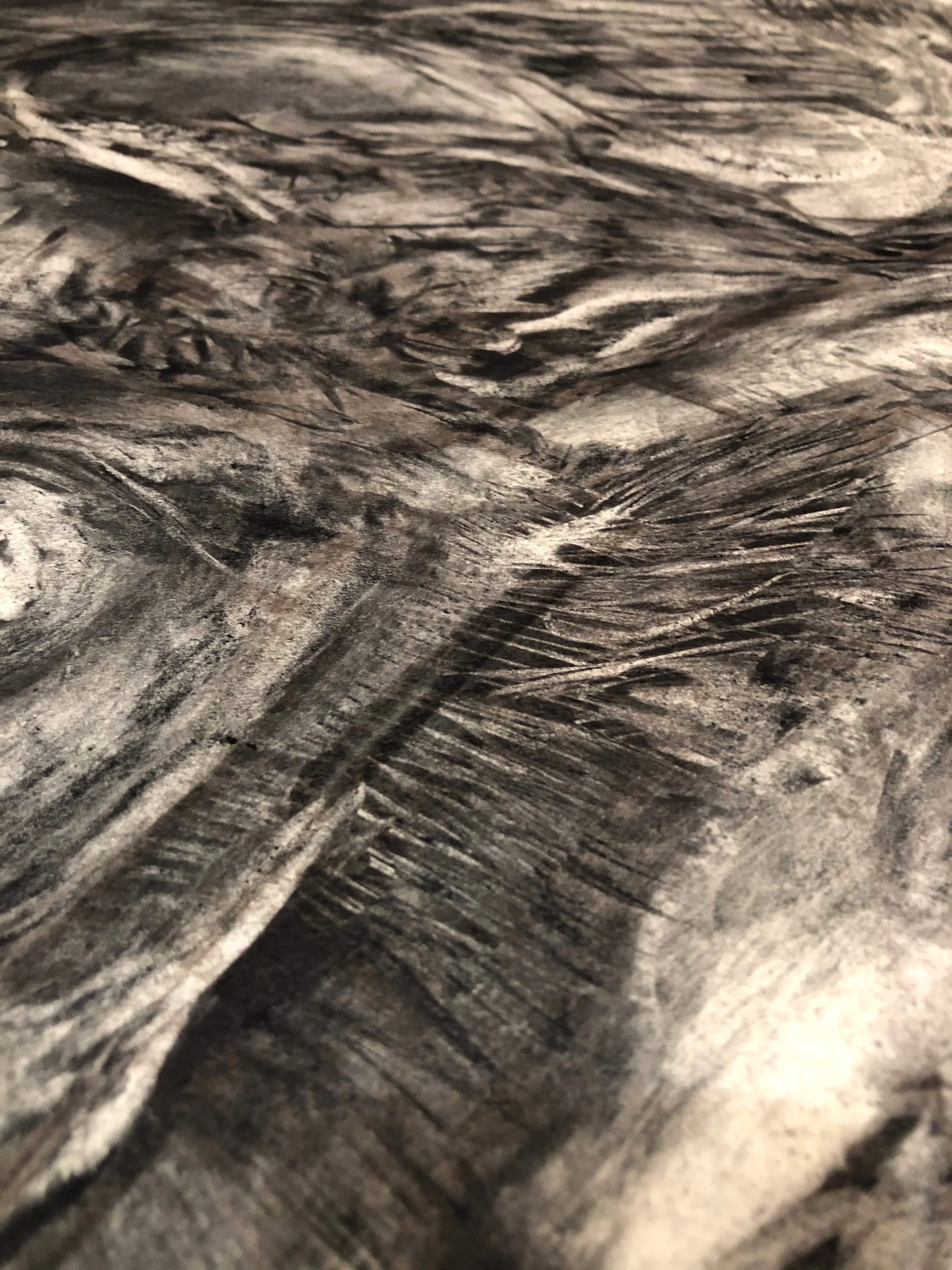 Charcoal, rice glue, and water on fabric ~24”x30”