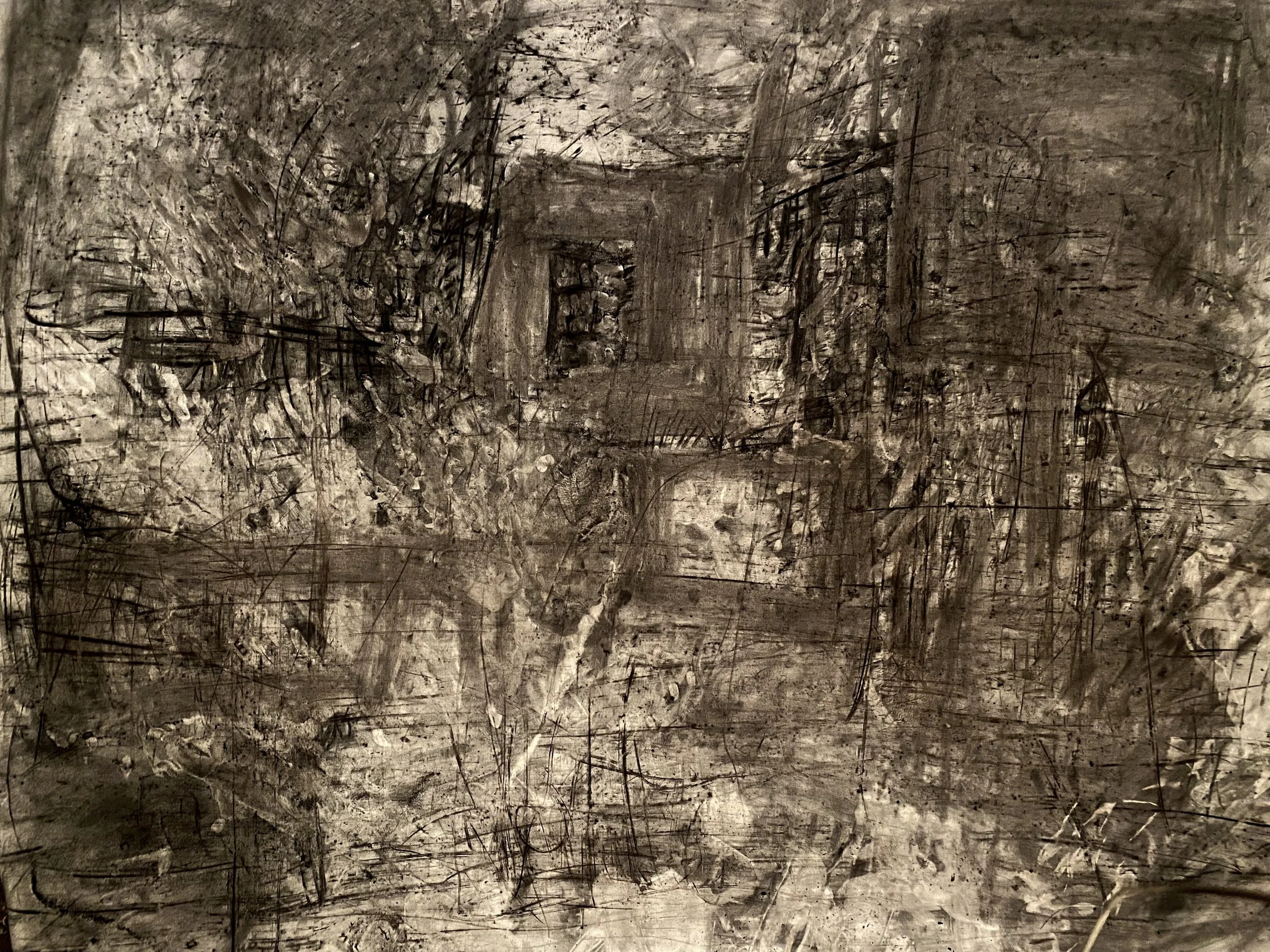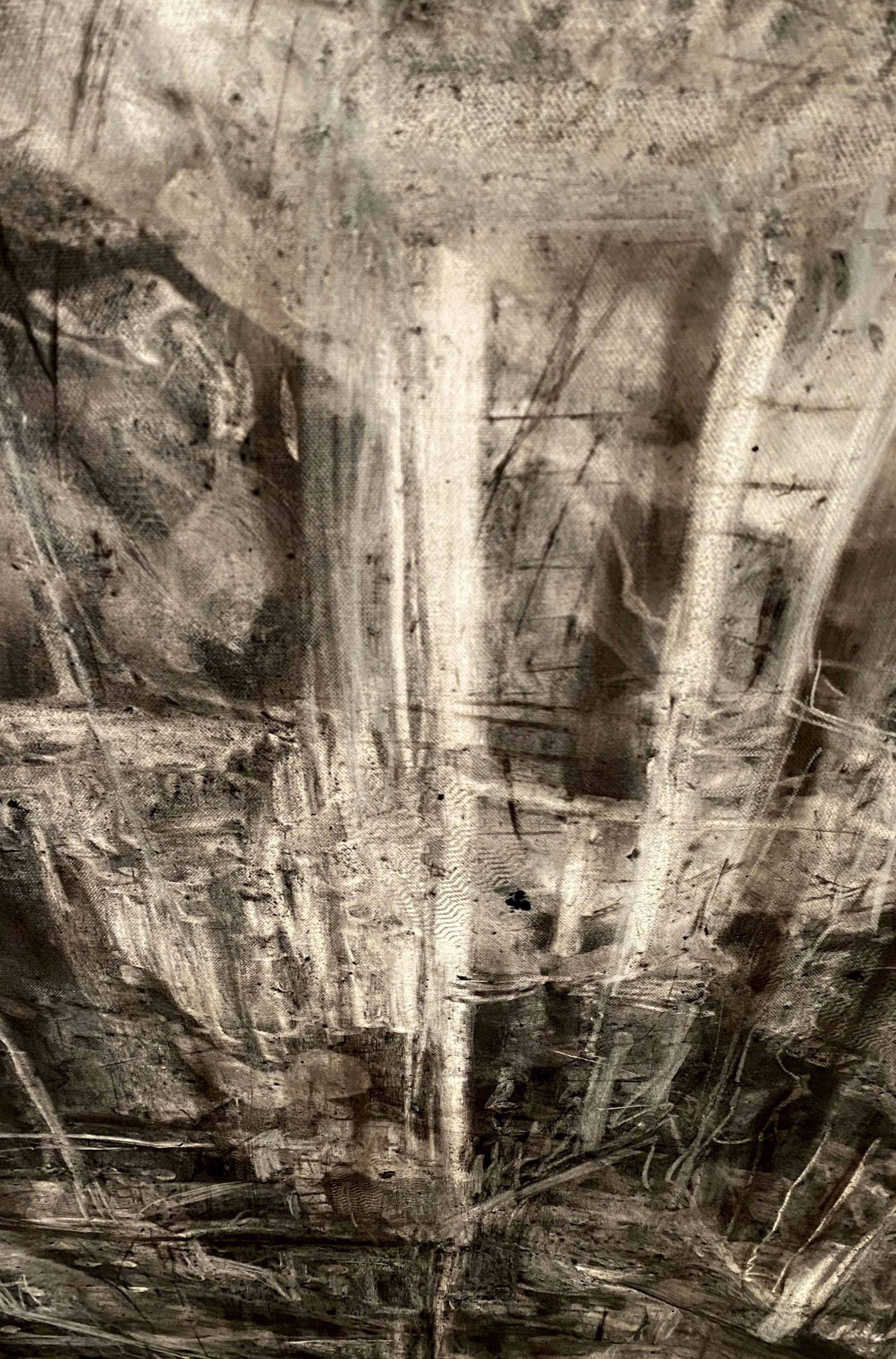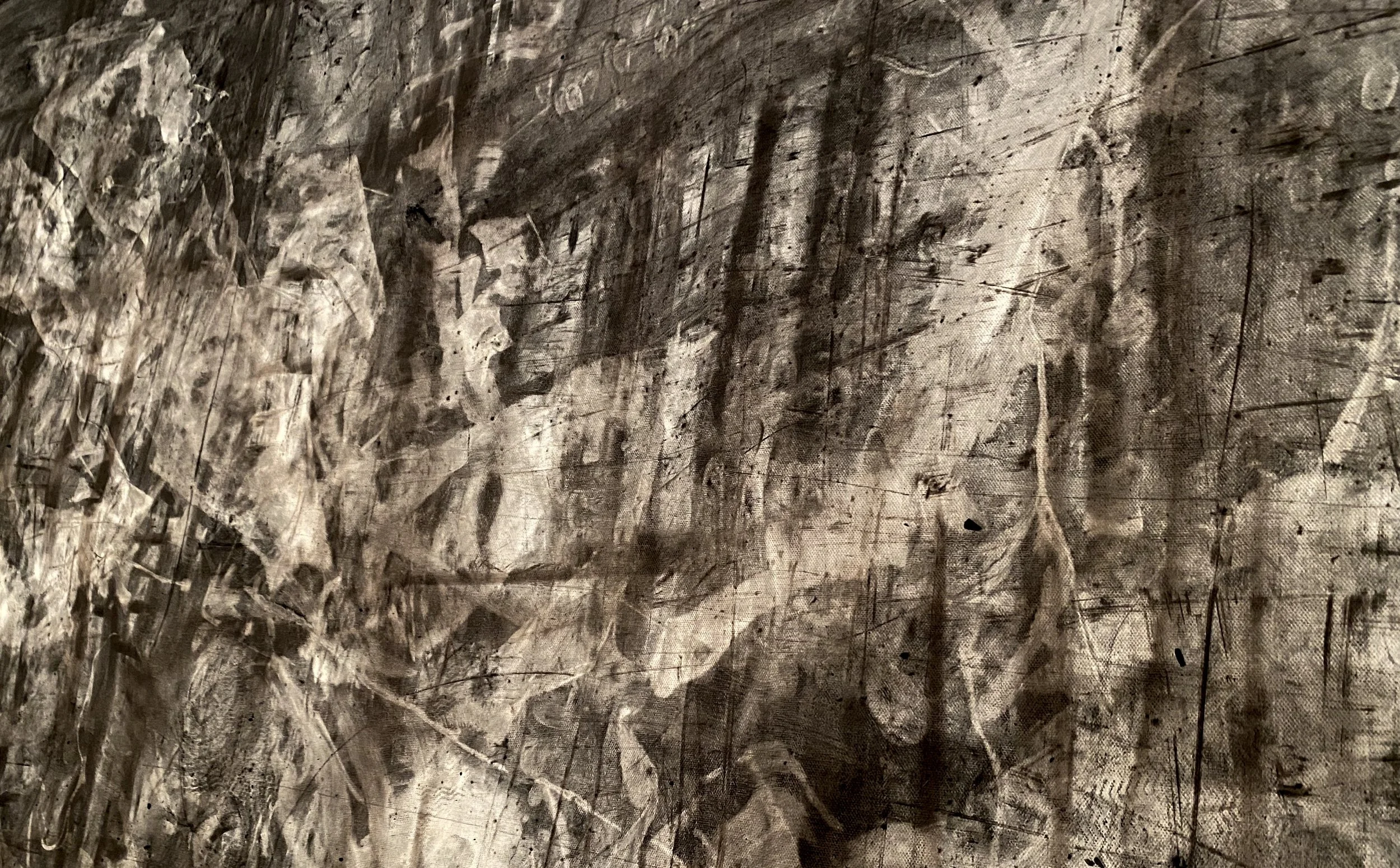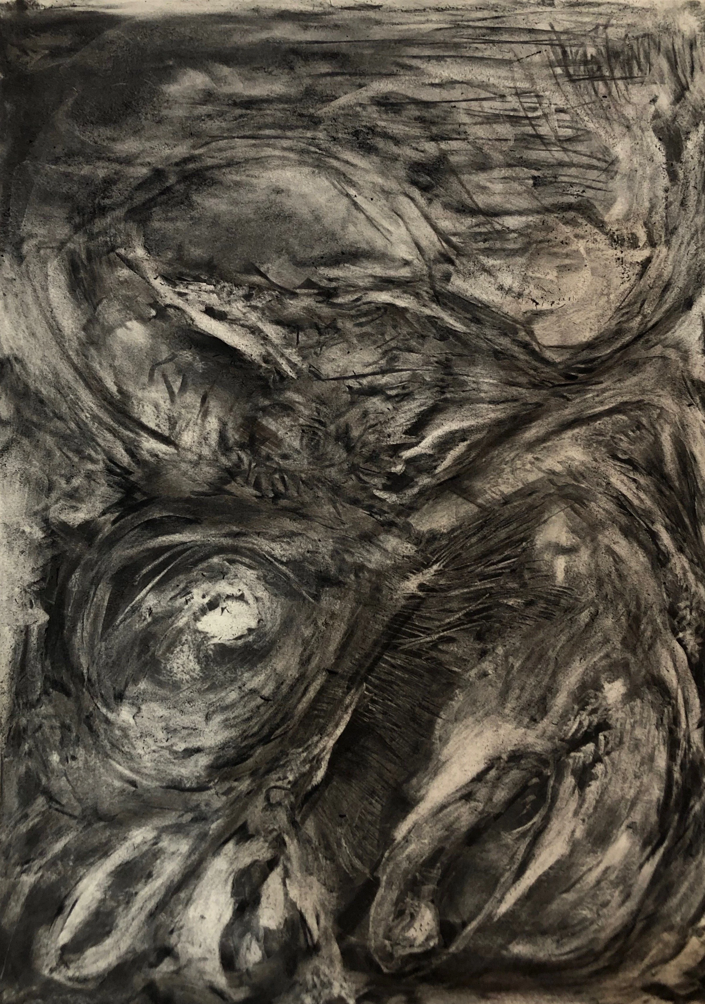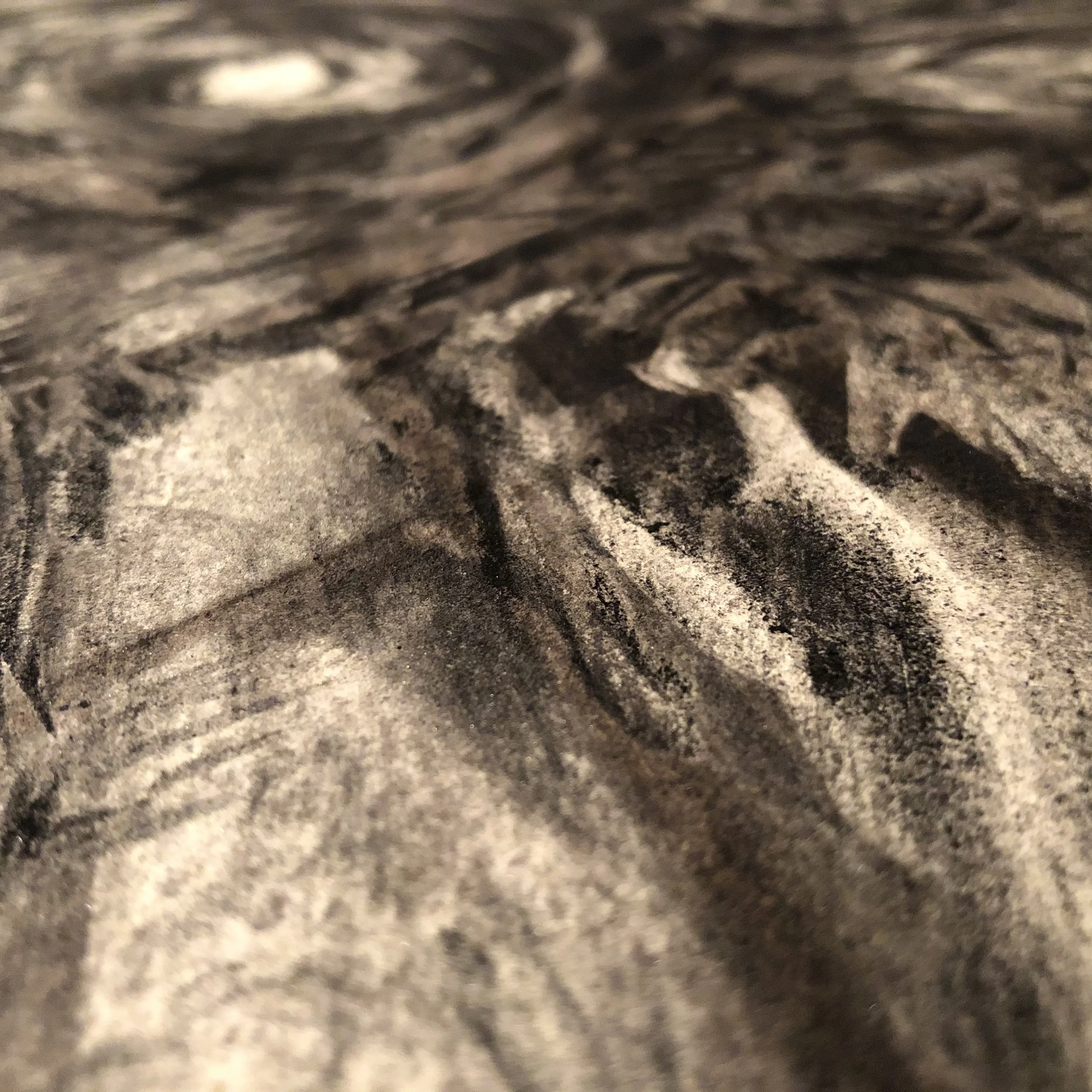 Charcoal, rice glue, and water on fabric ~24”x30”