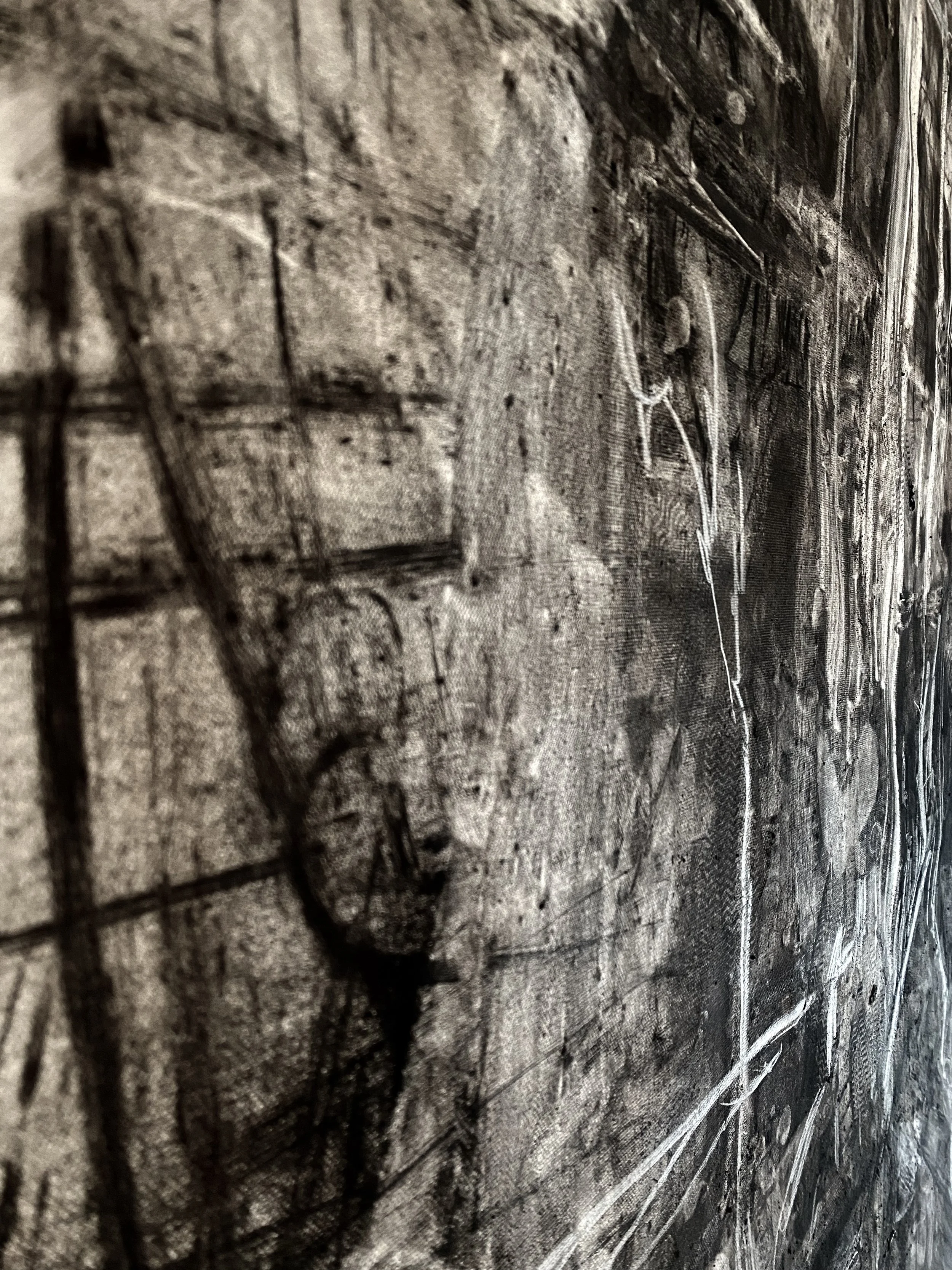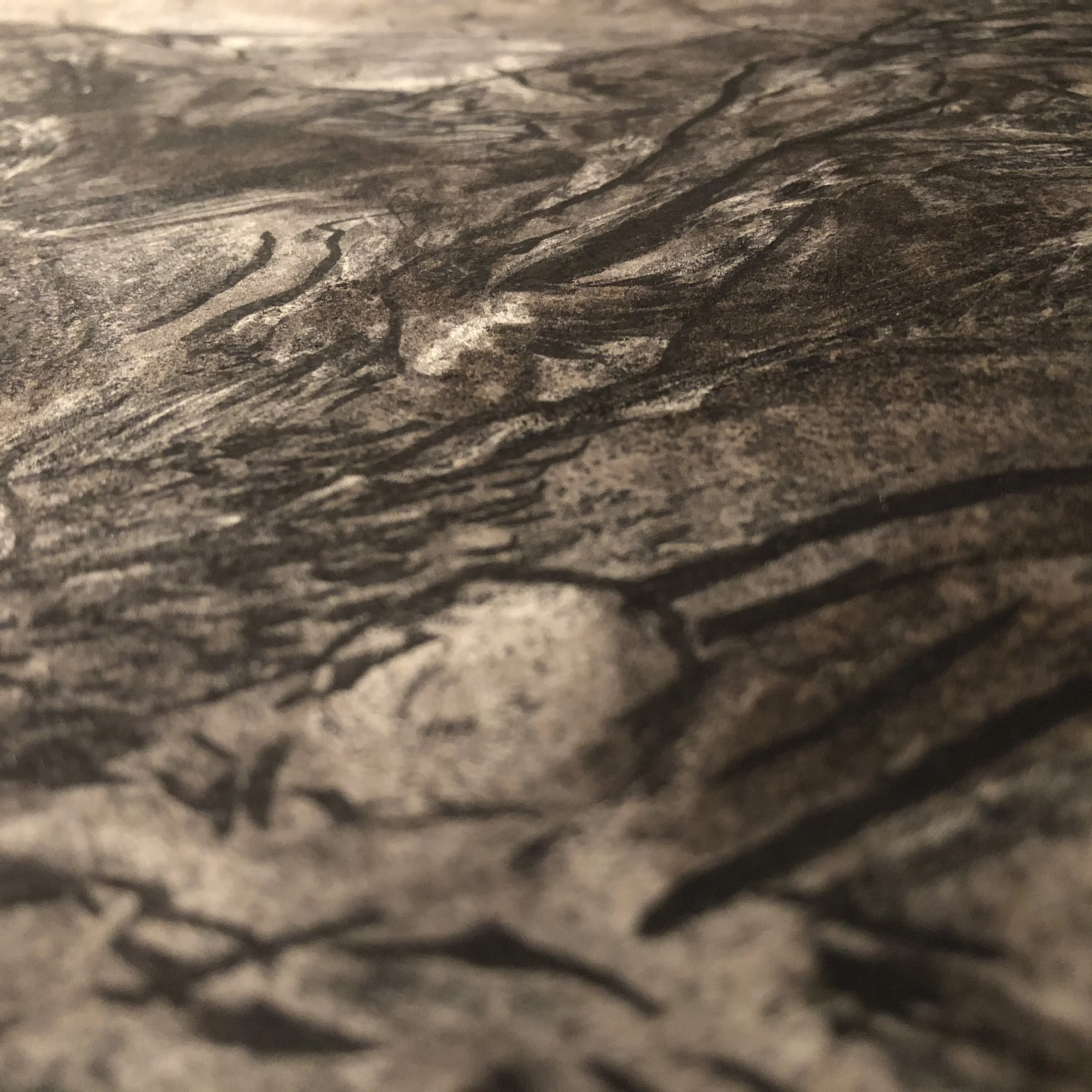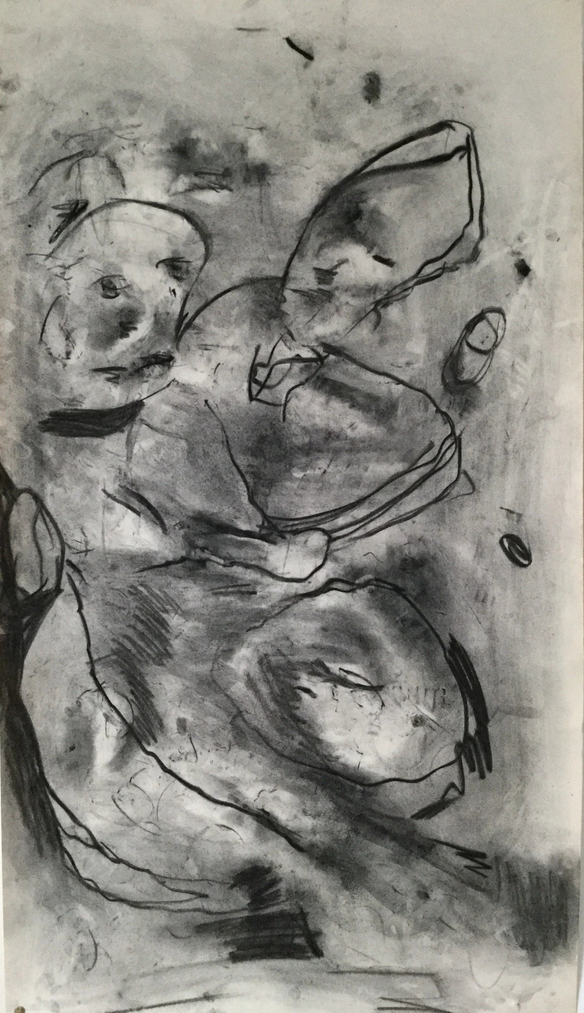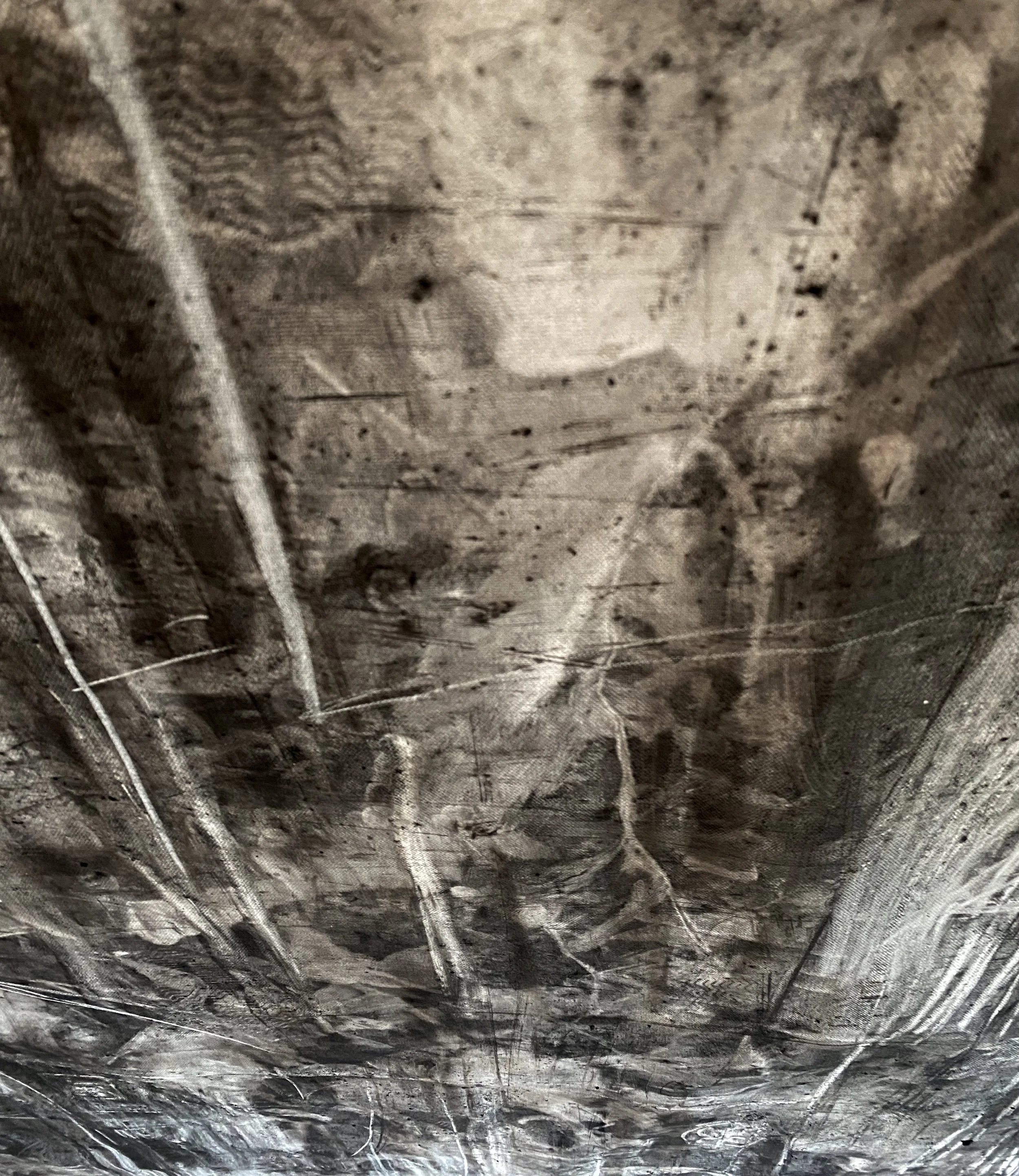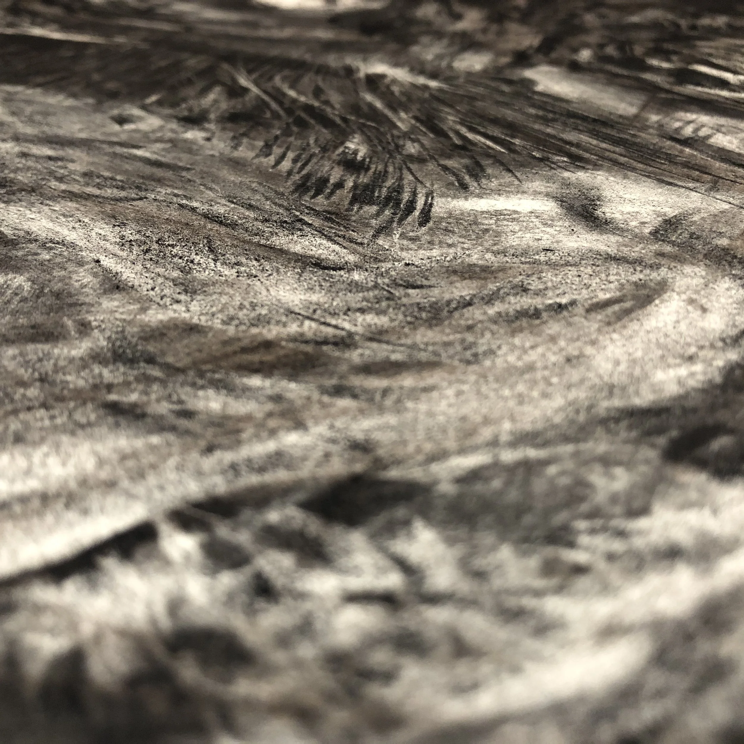 Charcoal, rice glue, and water on fabric ~24”x30”