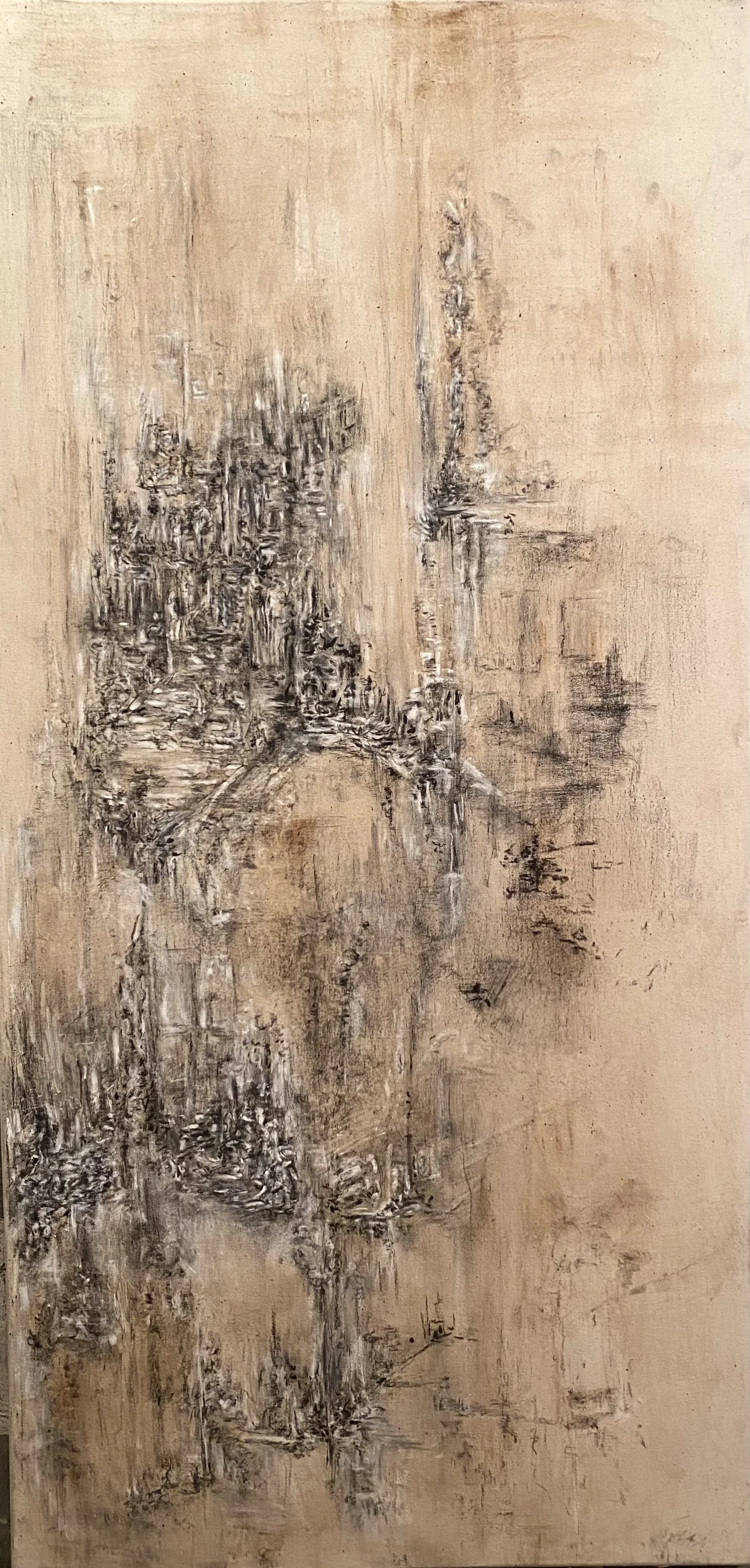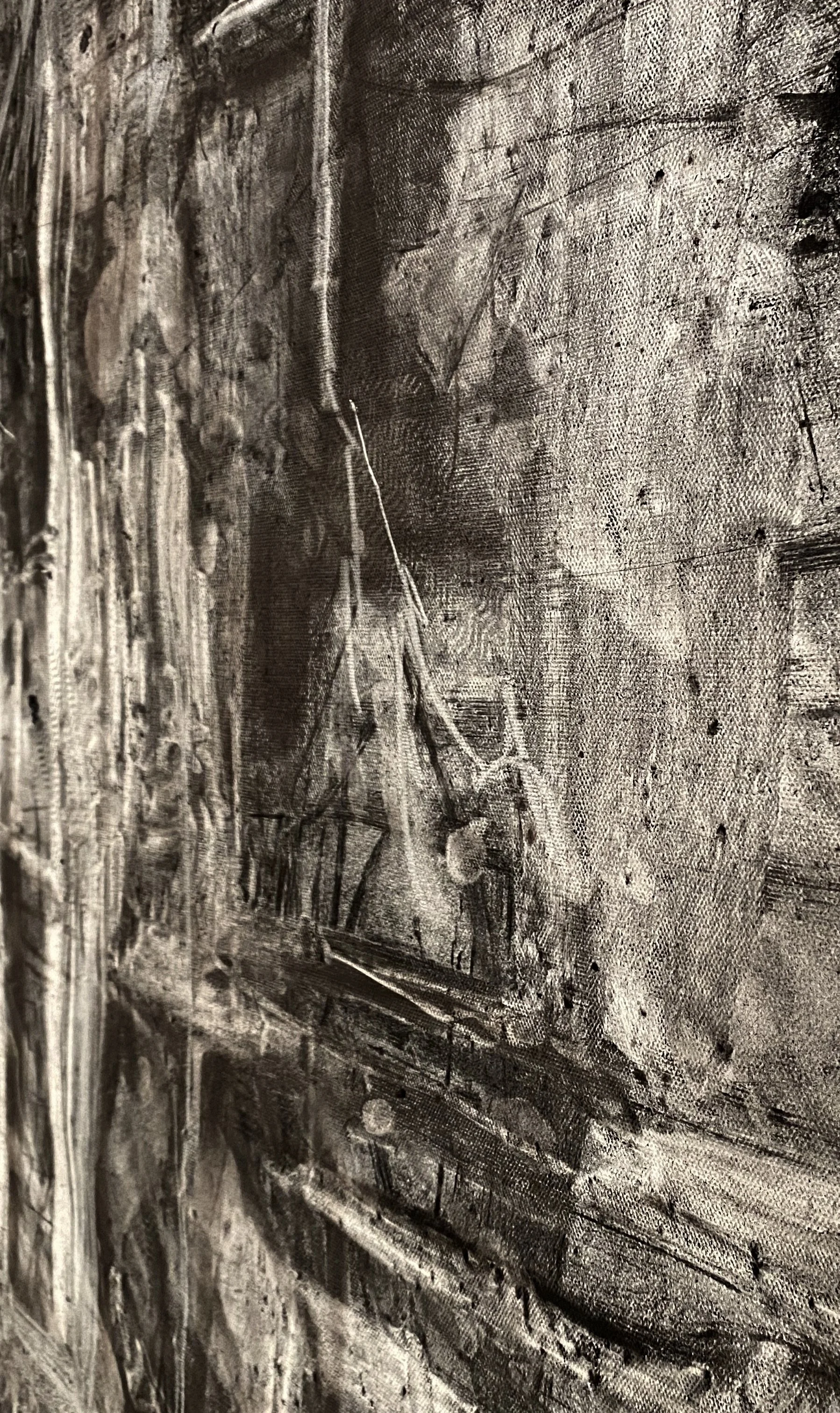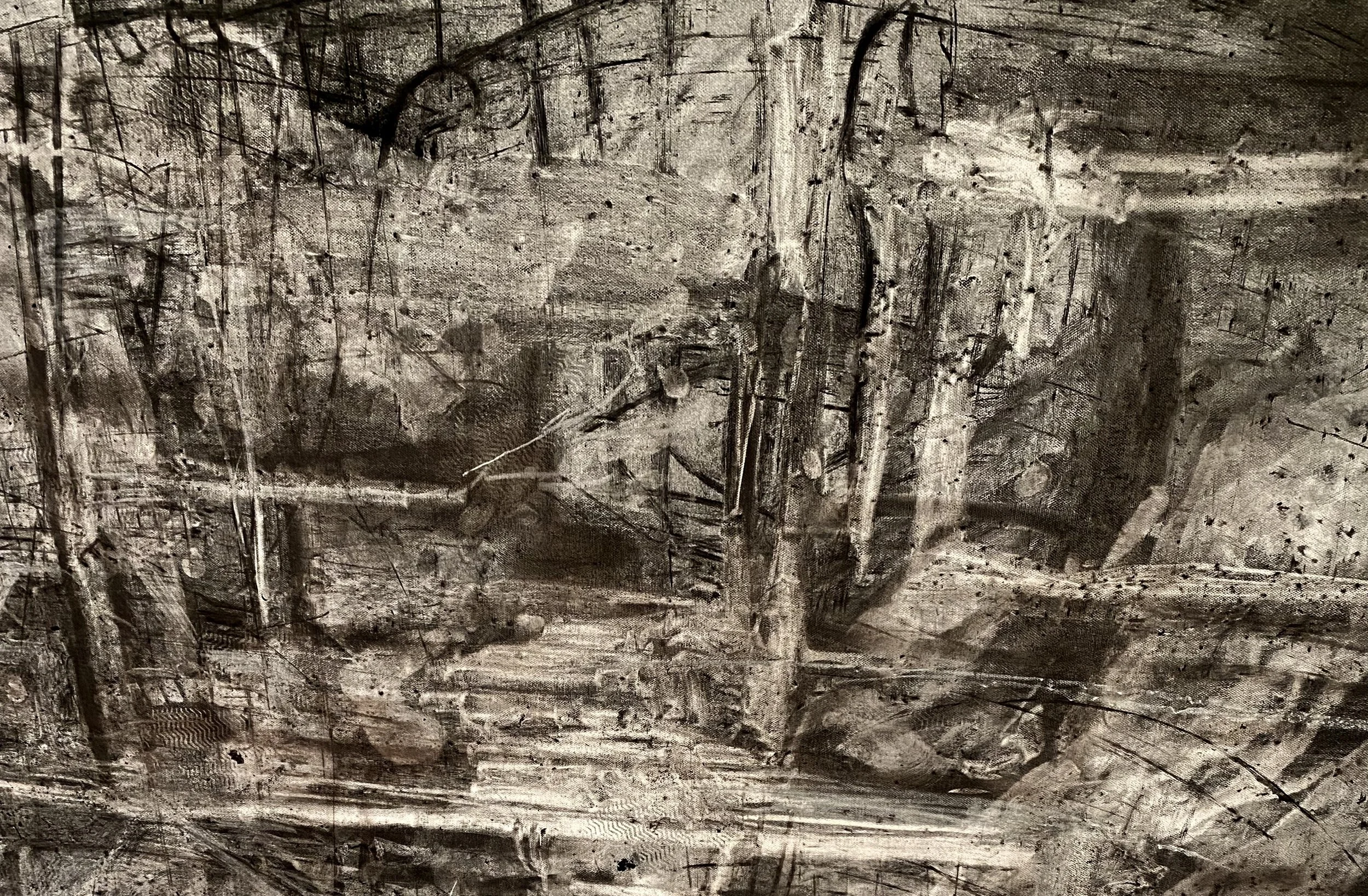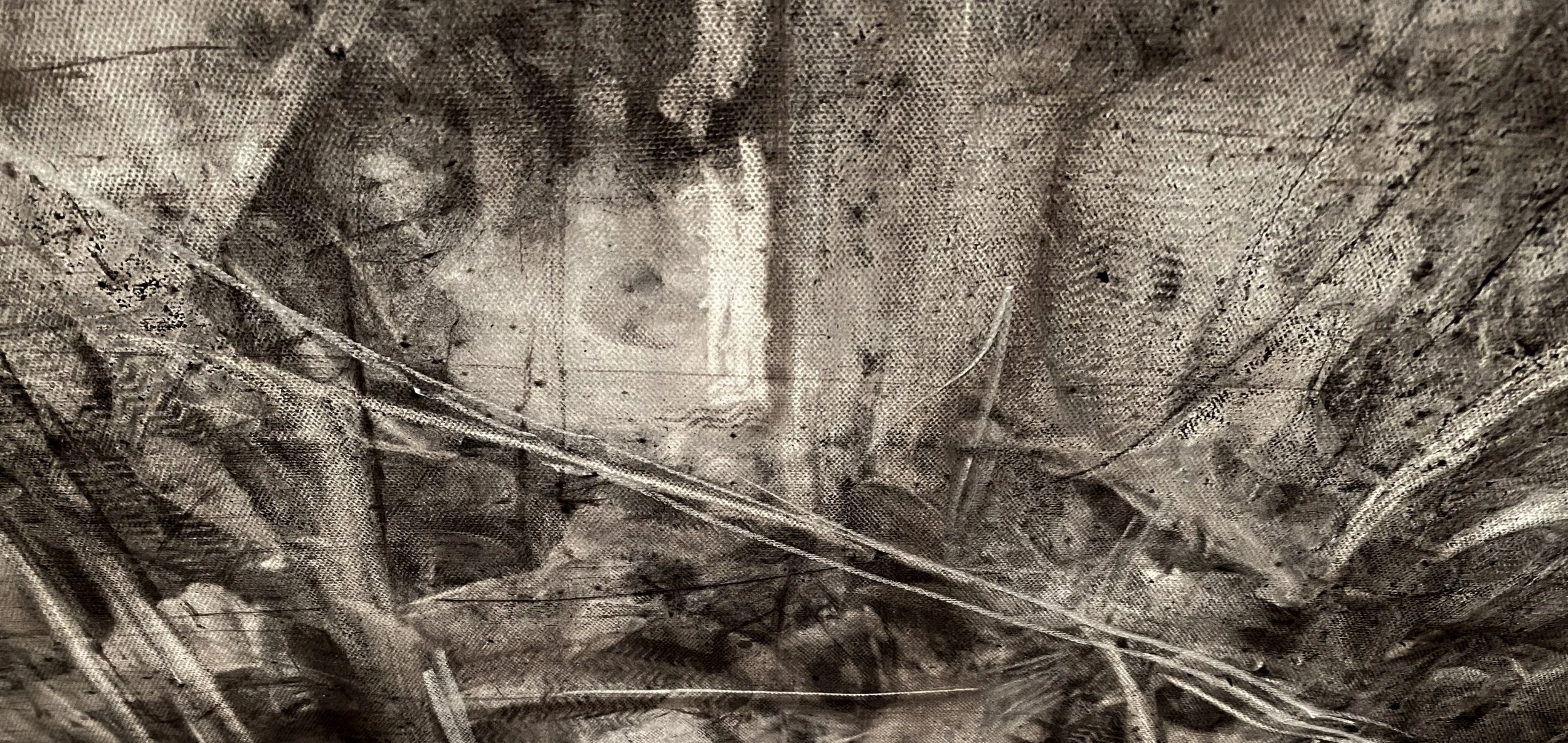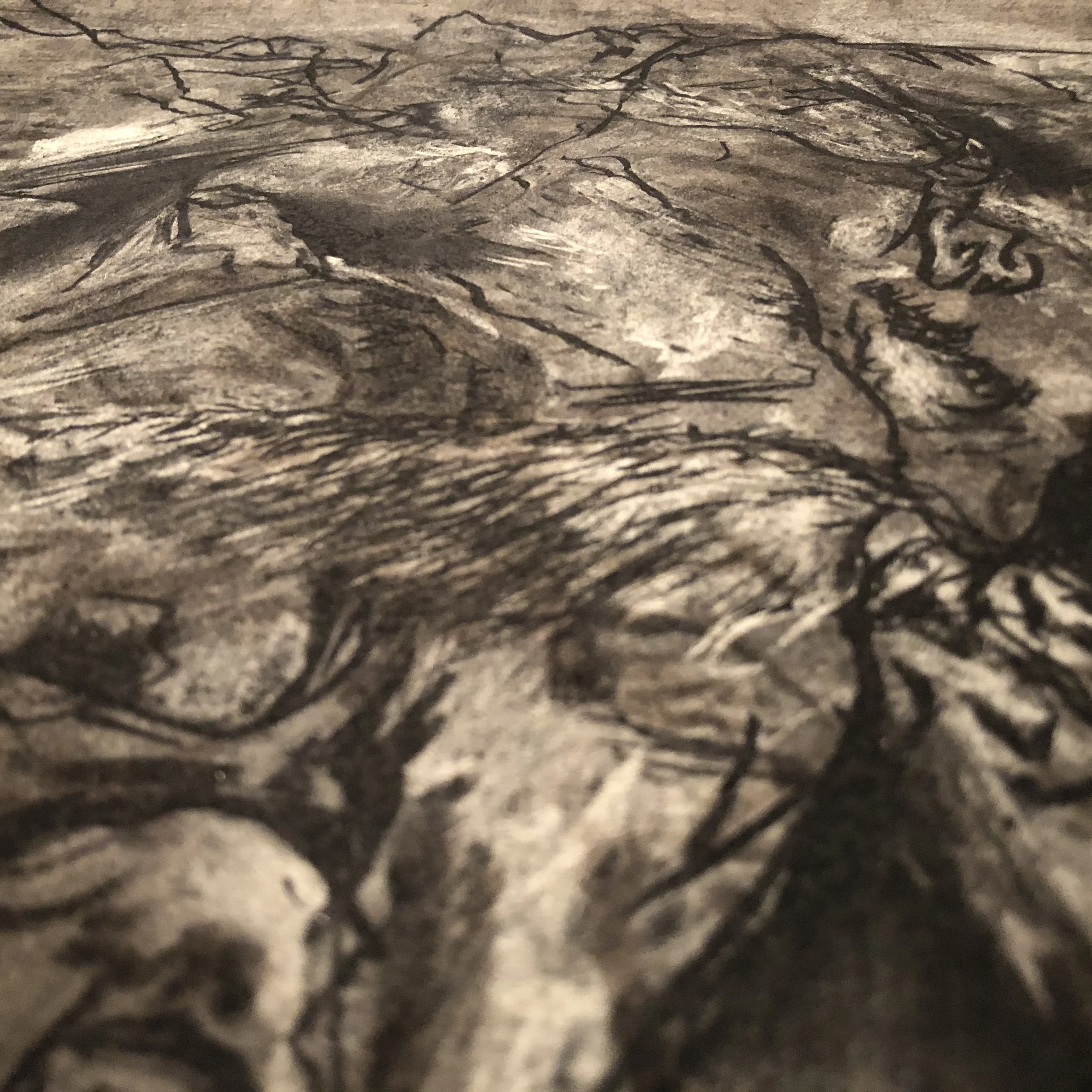 Charcoal, rice glue, and water on fabric ~24”x30”