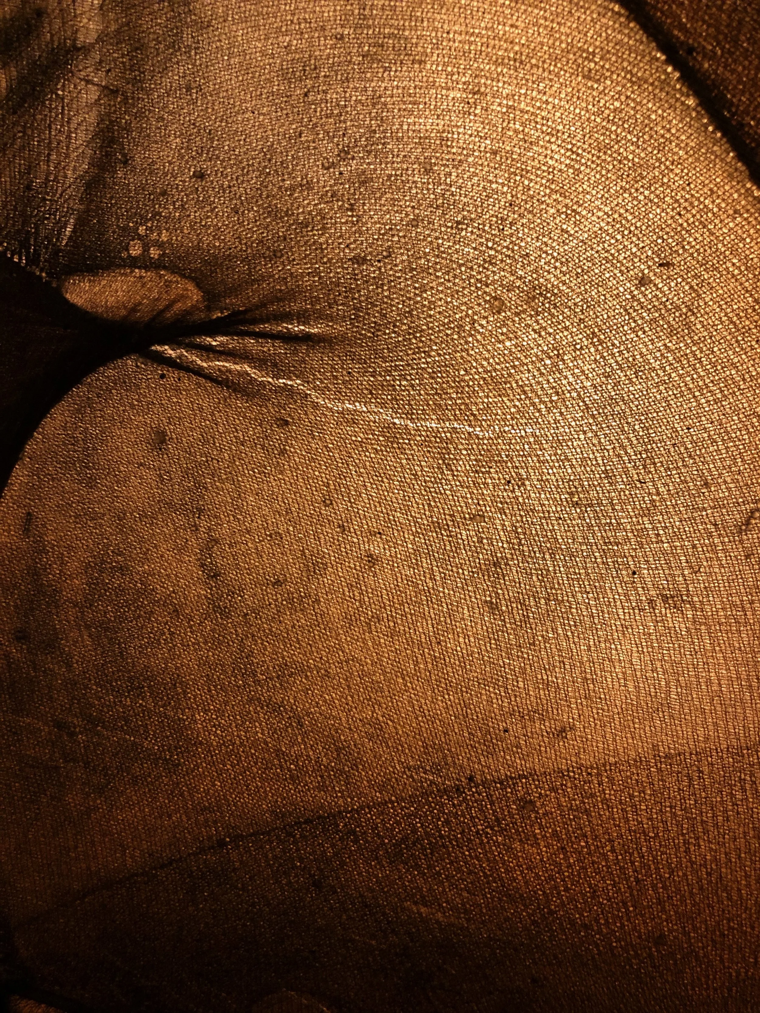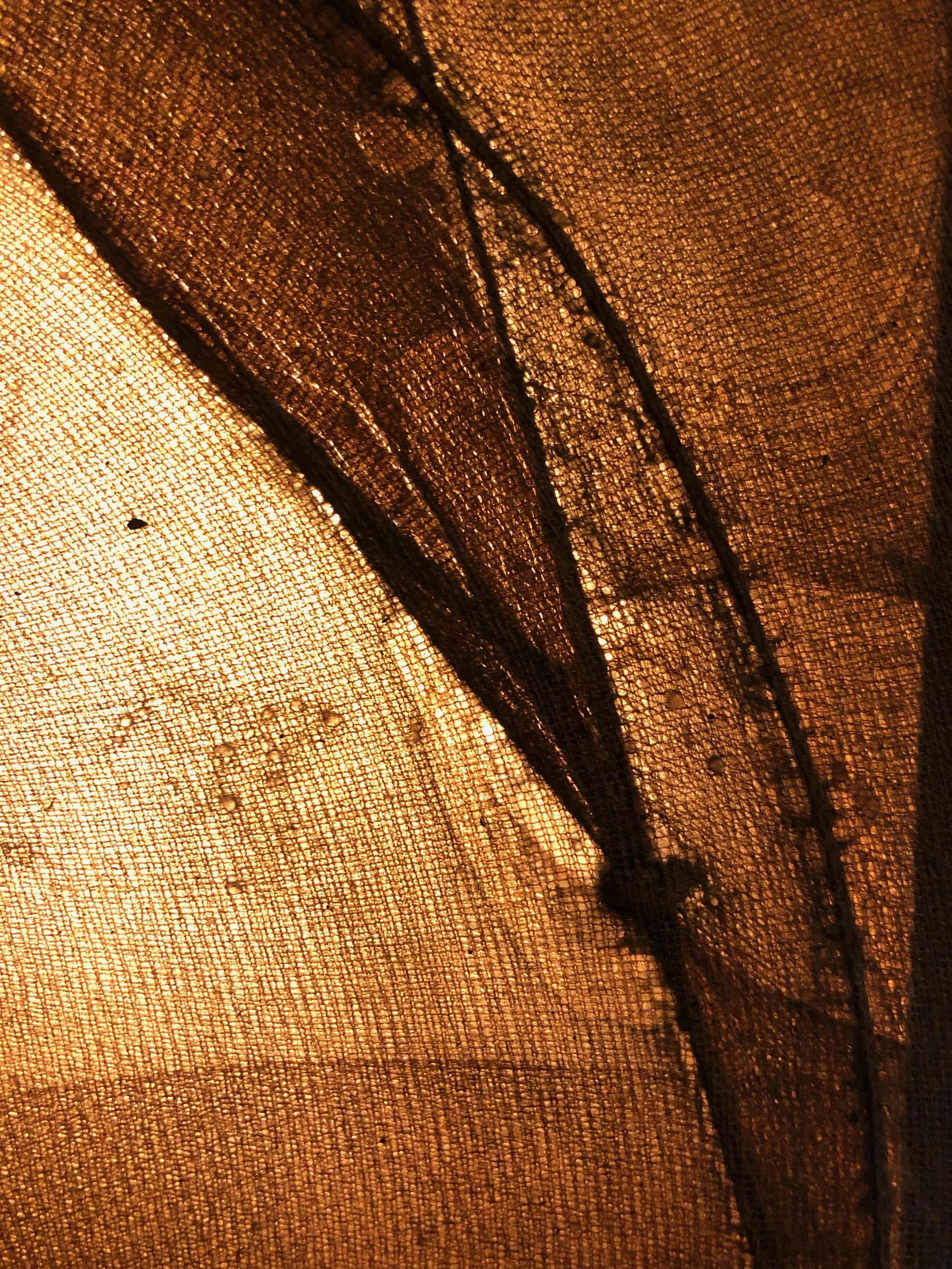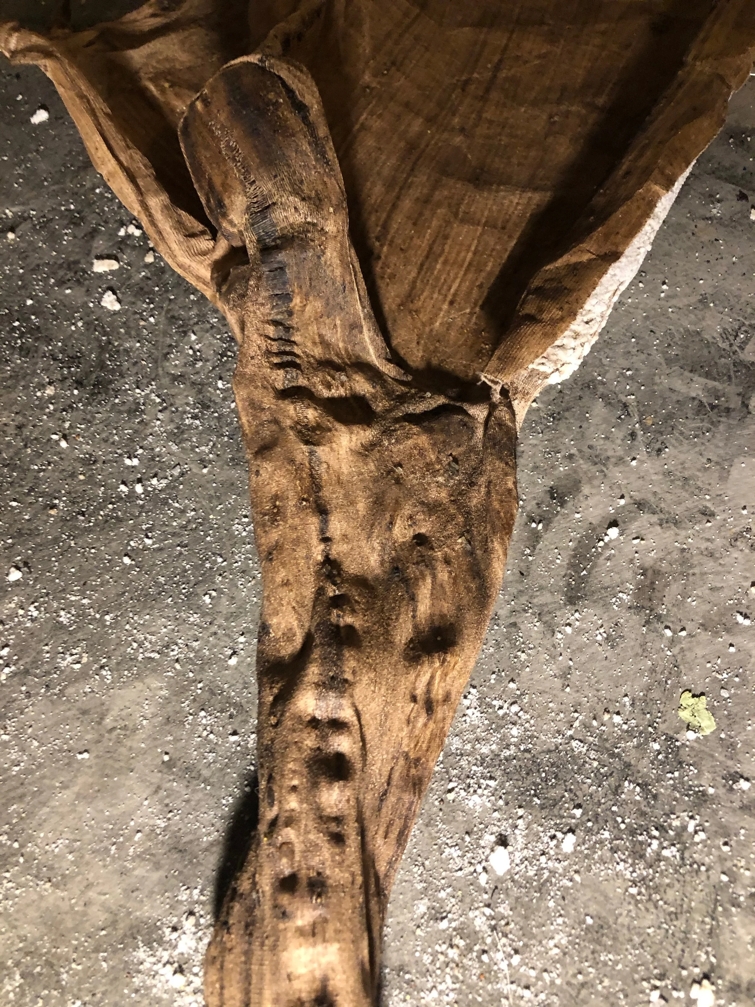 stretched stocking, rice glue, walnut ink