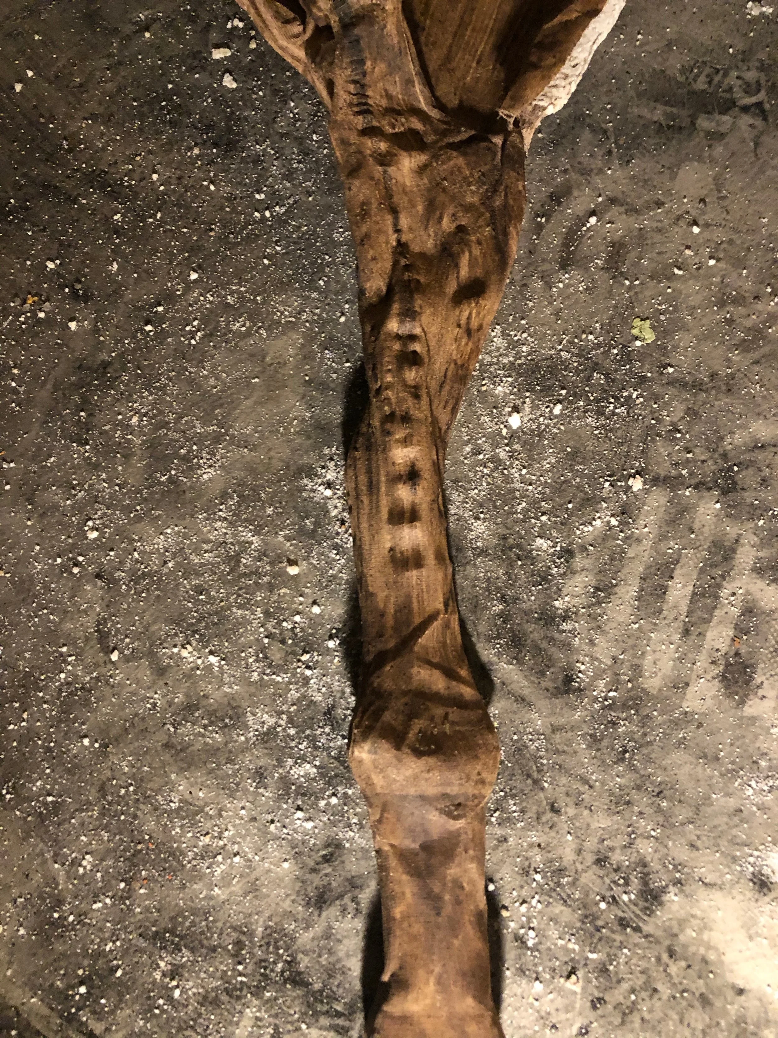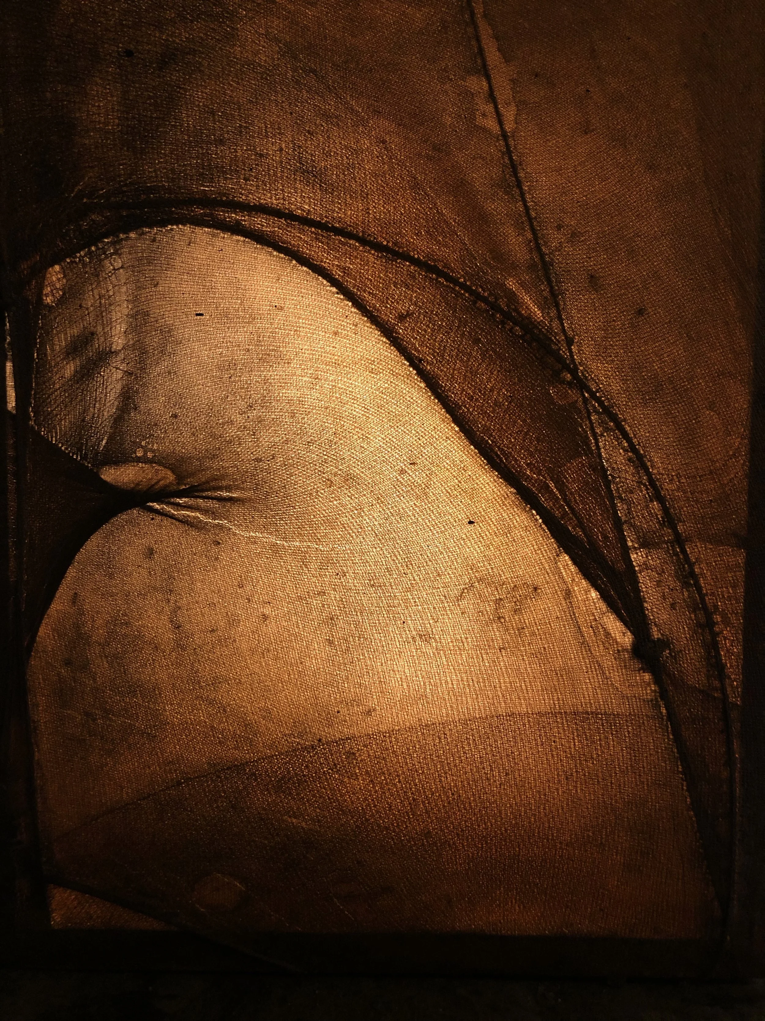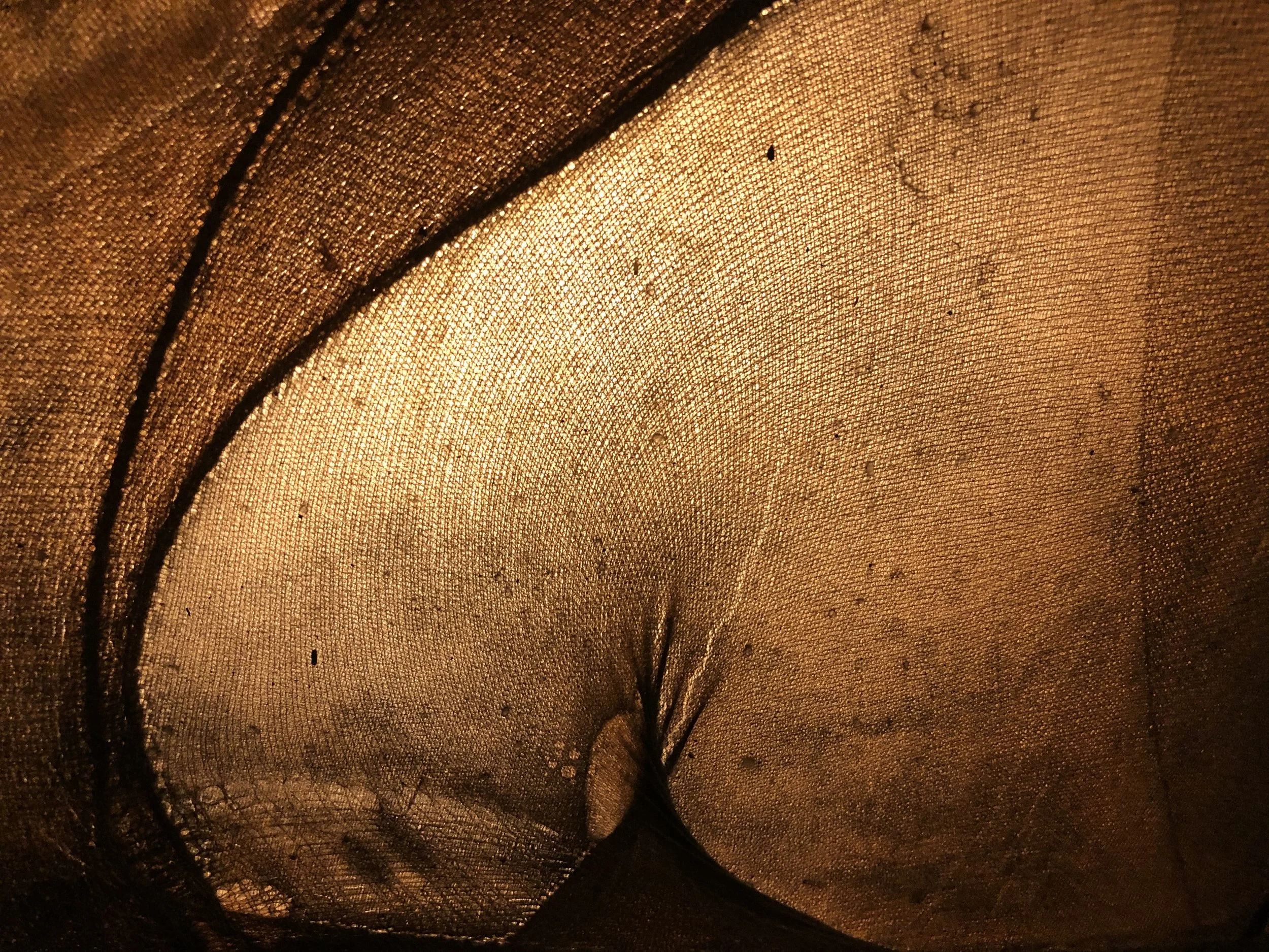 stretched stocking, rice glue, walnut ink
