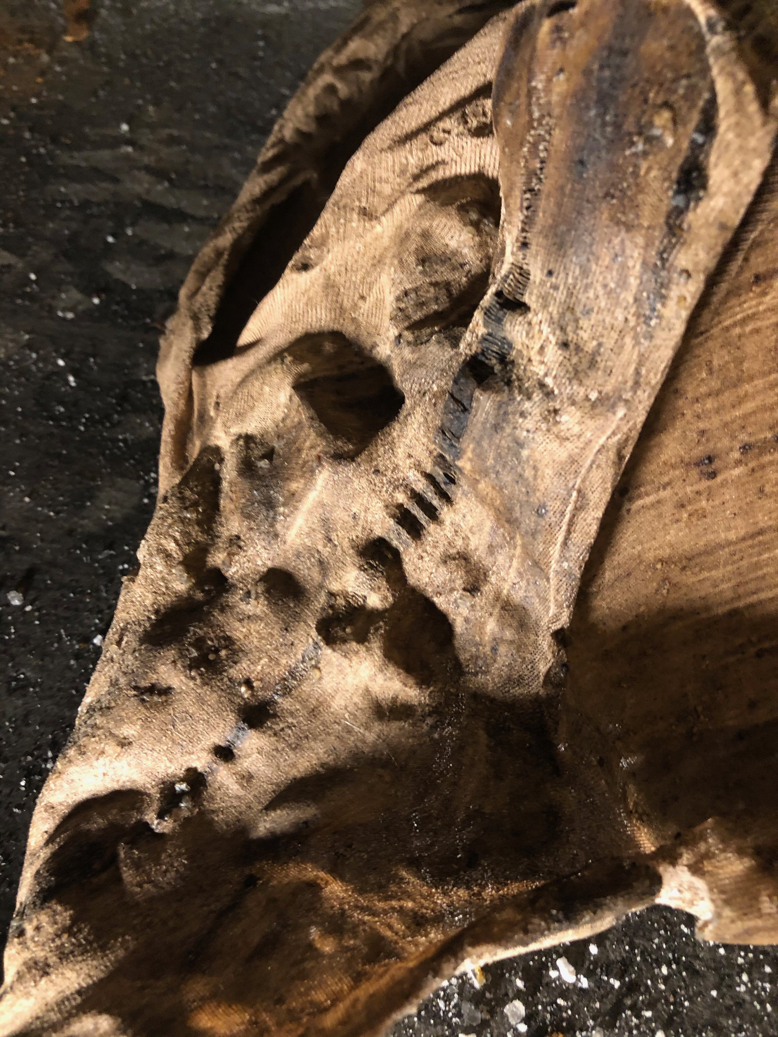 Sugar, turmeric, dirt, and cocoa on fabric