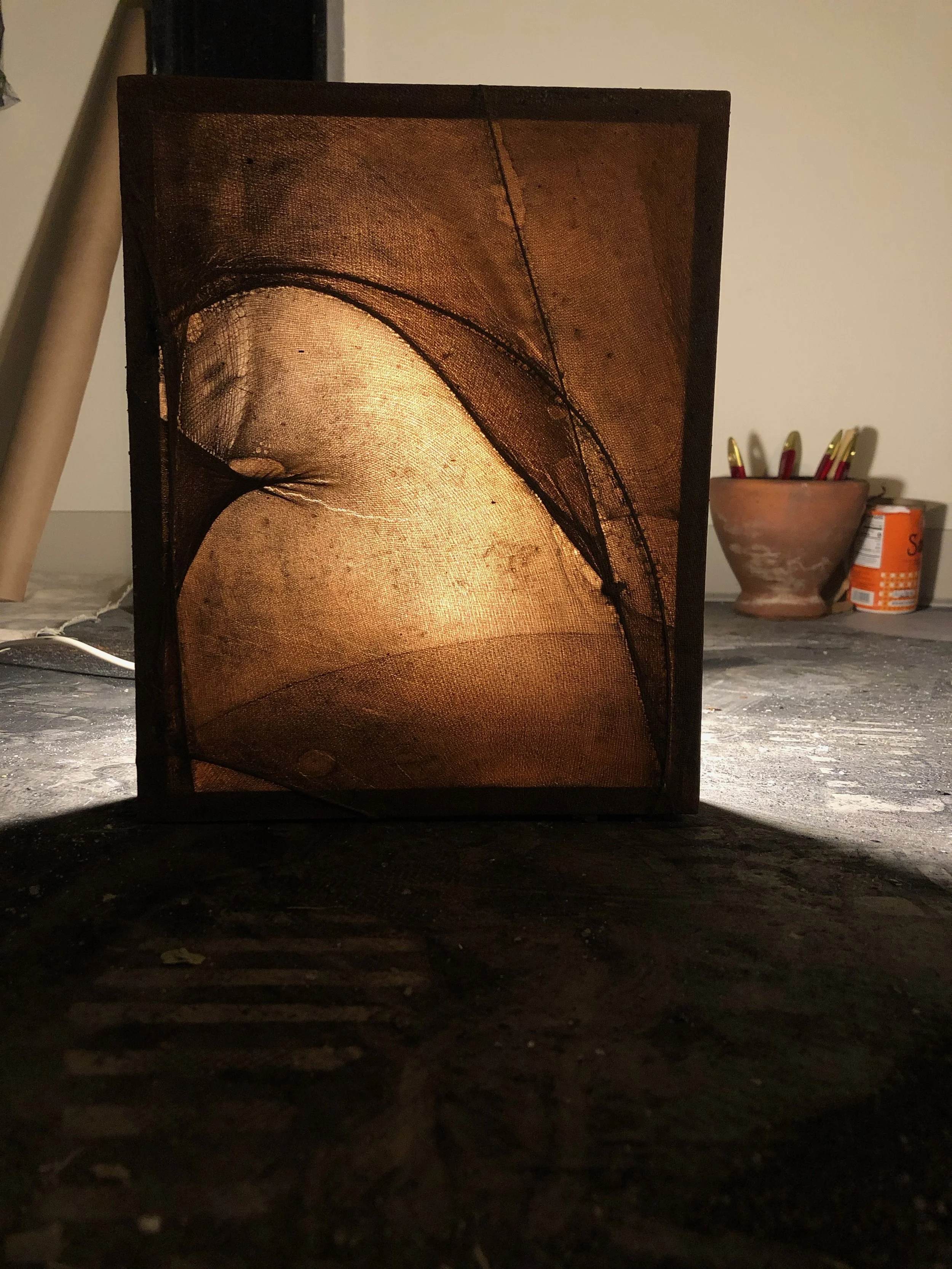 light box: single stocking stretched over wooden frame