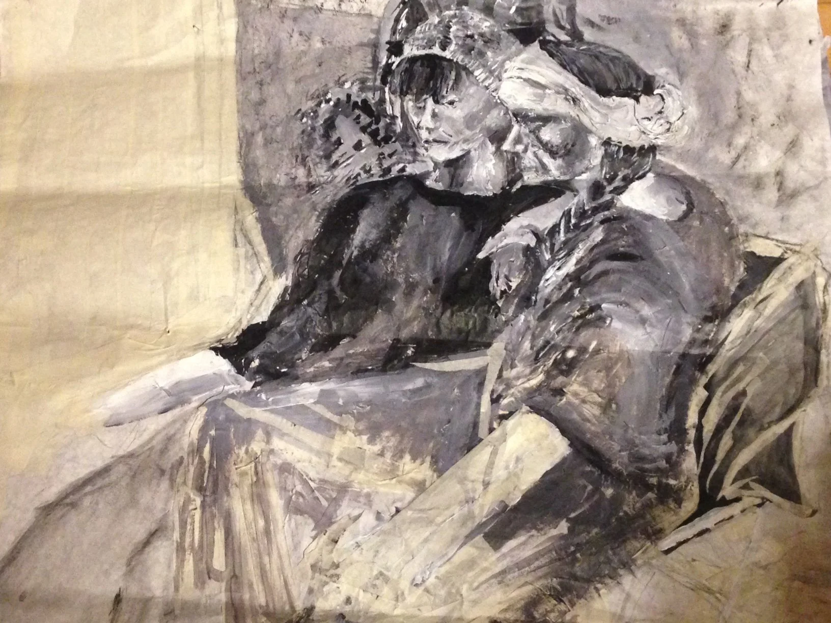 charcoal, soil, clay, and pastel on paper 24”x 32”