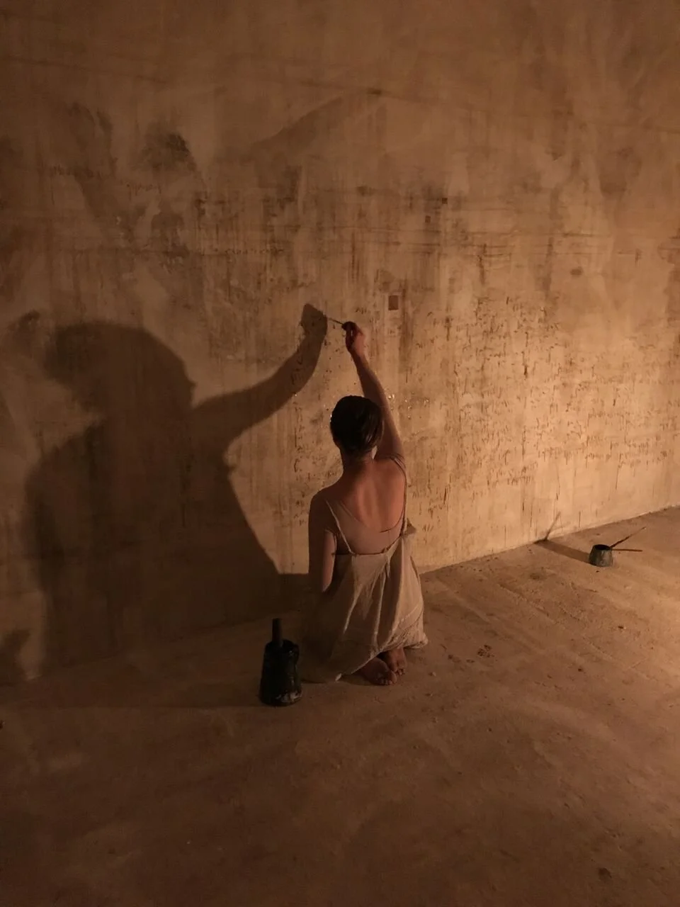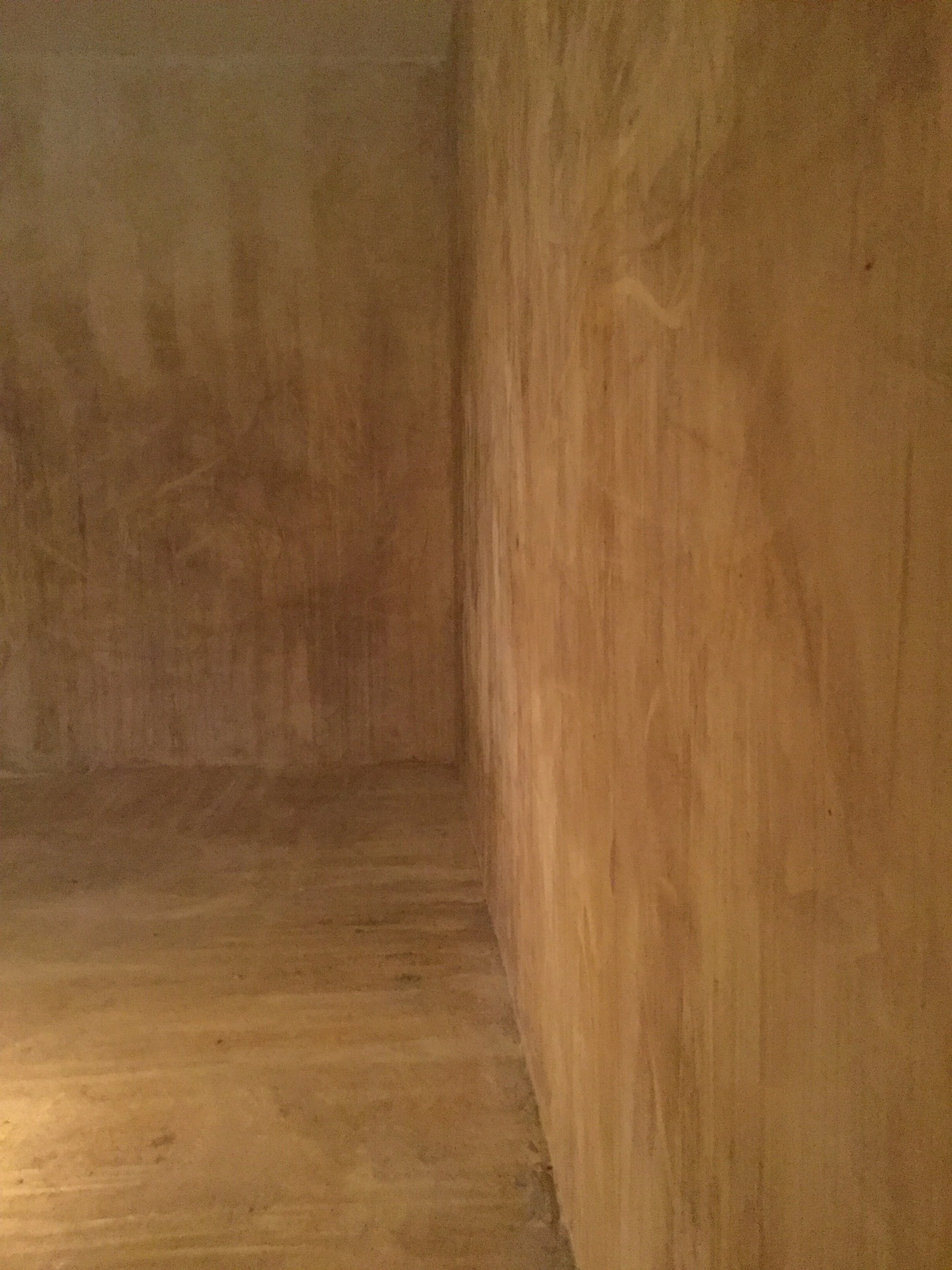 The walls were “drawn” over the course of many months with turmeric, tea, rust, and the dirt from my studio floor. By the end, I lost track of the number of layers, but the result was a room that seemed to breathe and extend beyond itself.