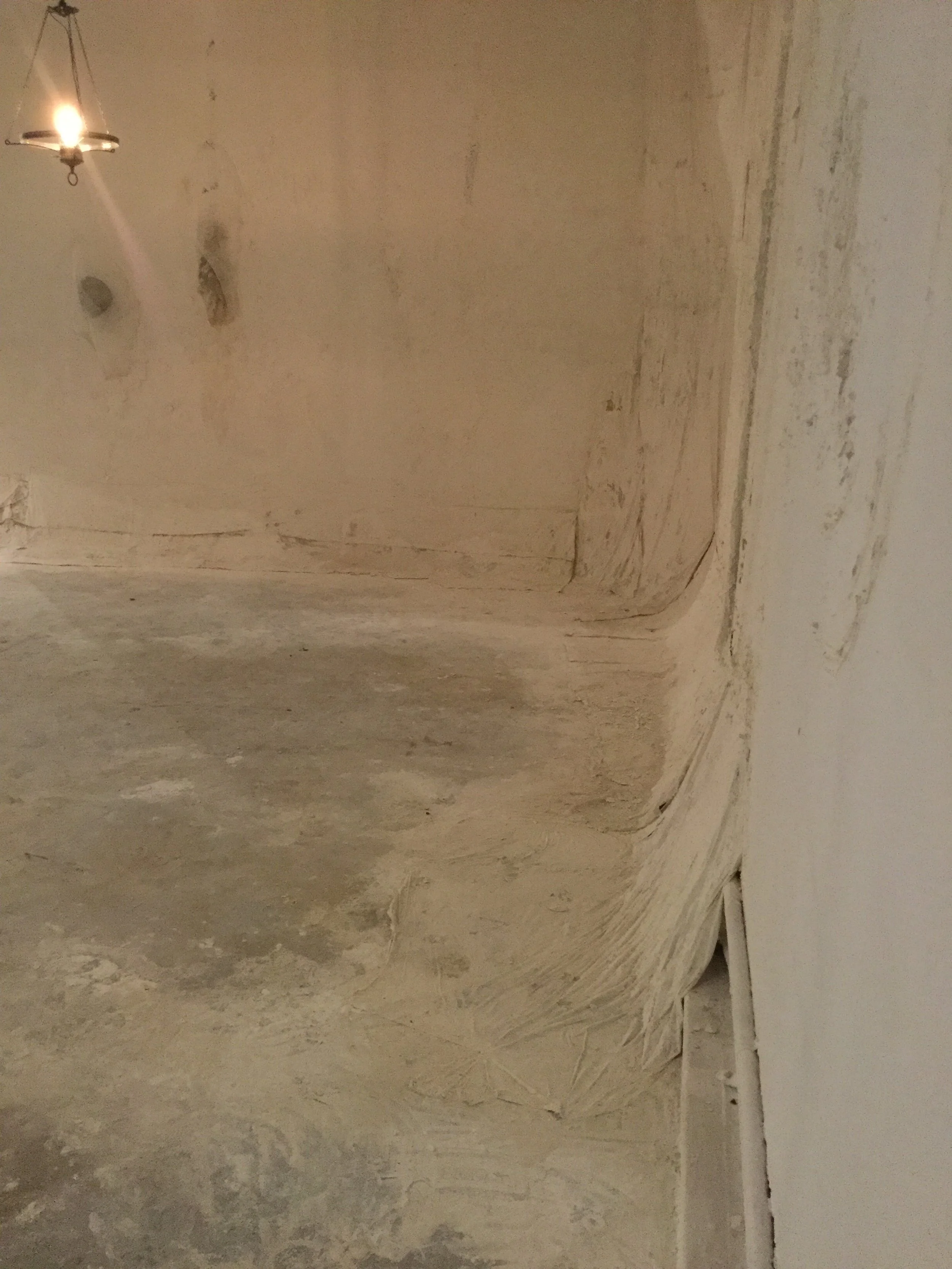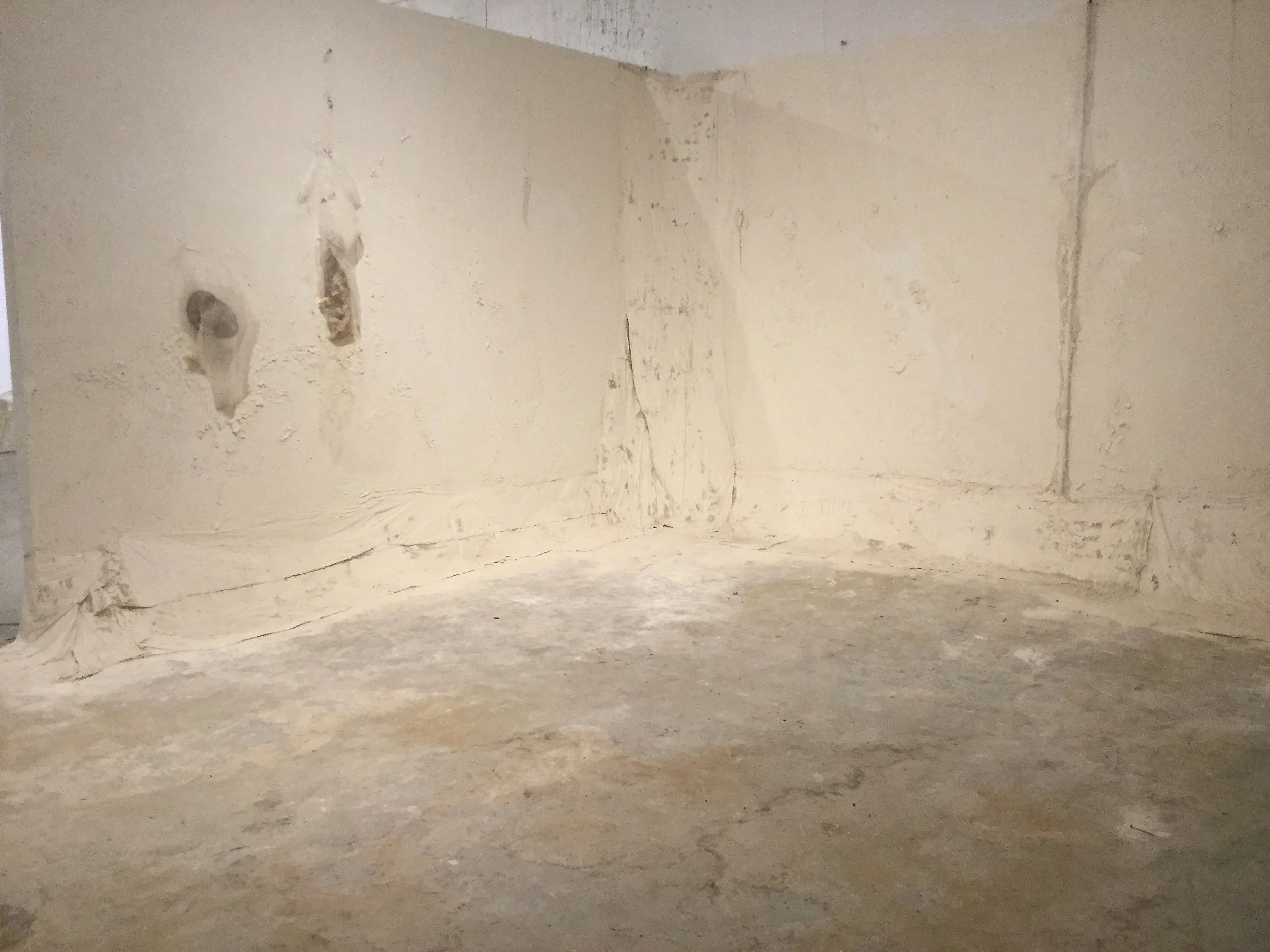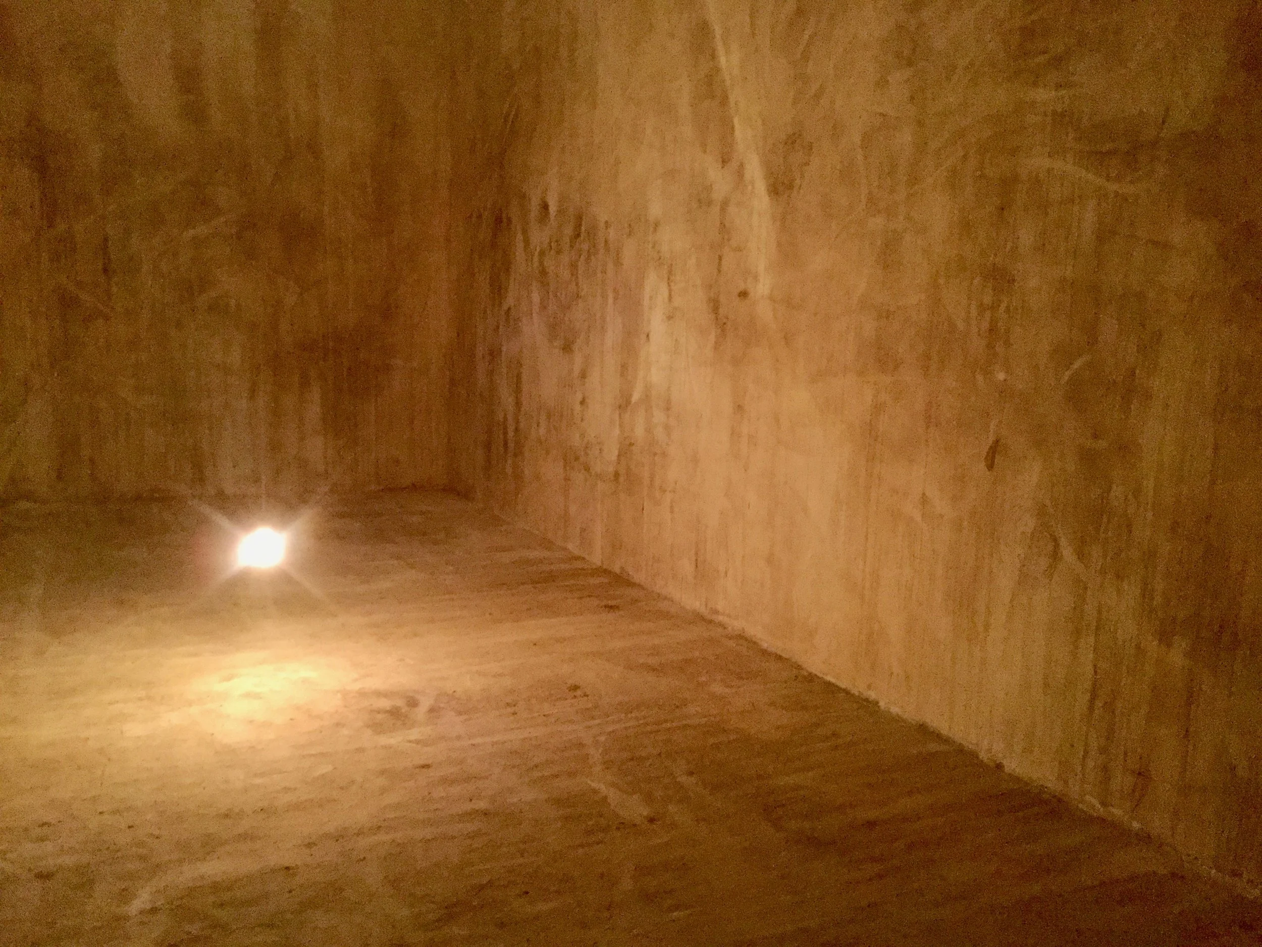 Viewers were asked not to speak, but were free to touch anything in the room. The walls were textured with etchings and dried salt, which acted as a low relief only experienced through touch.