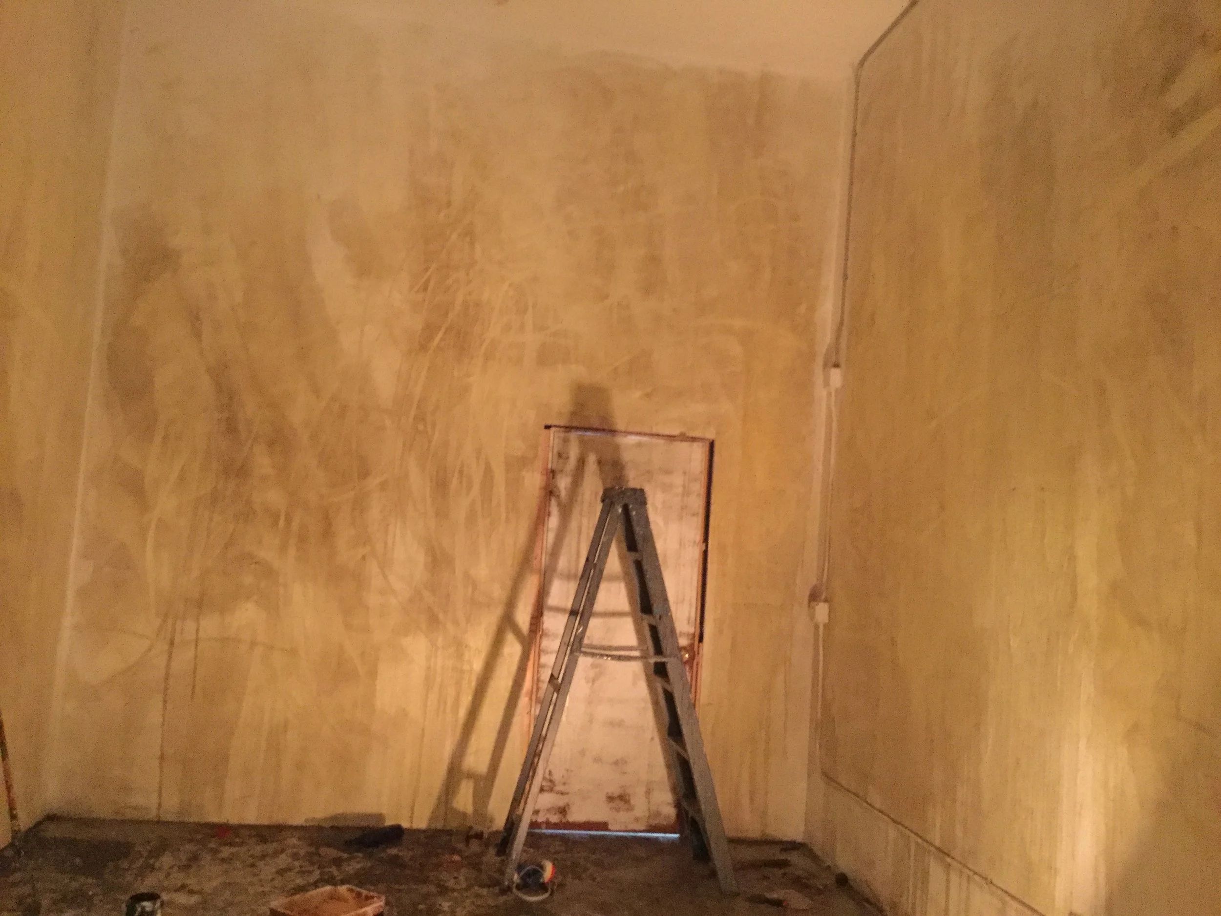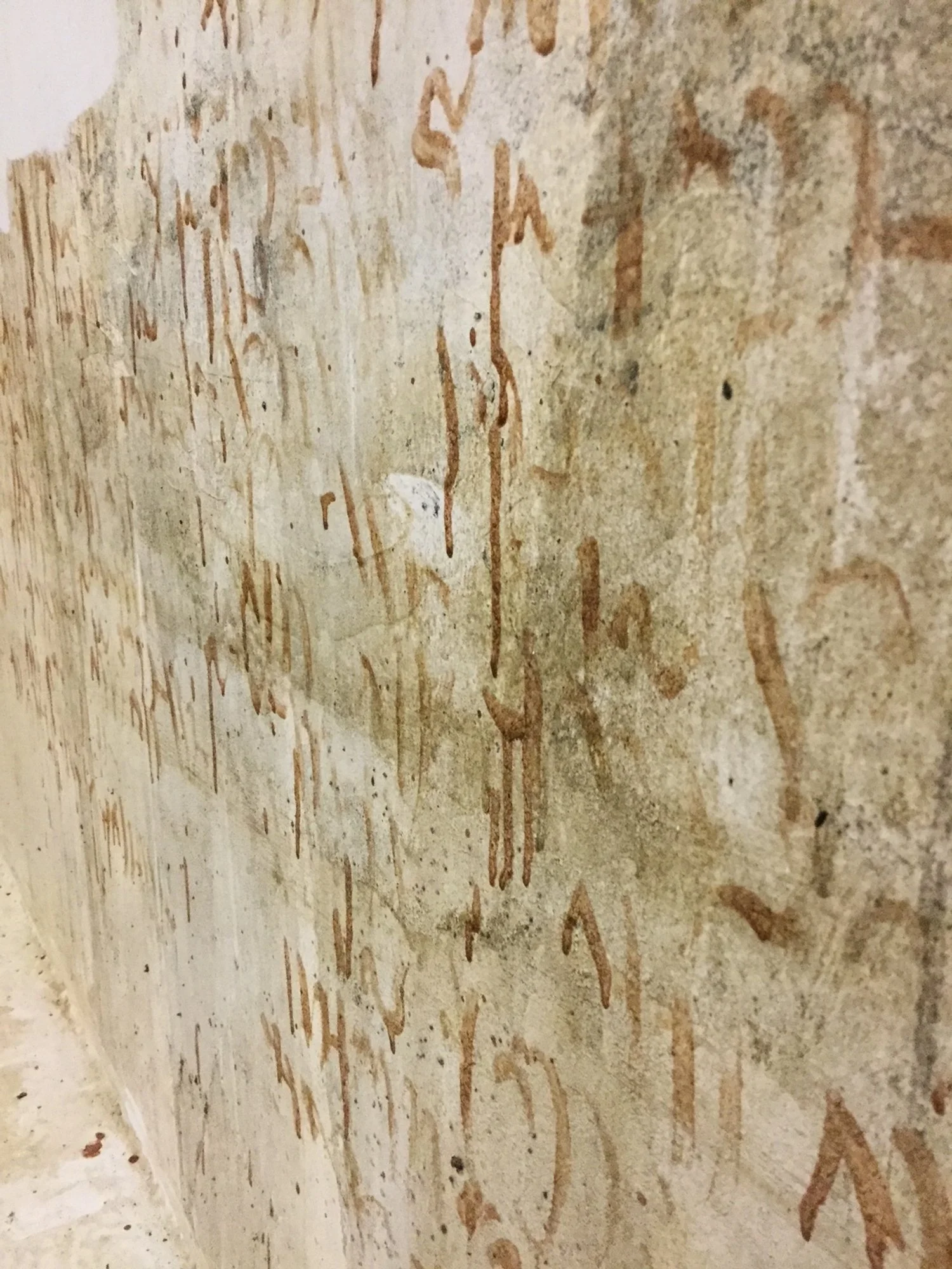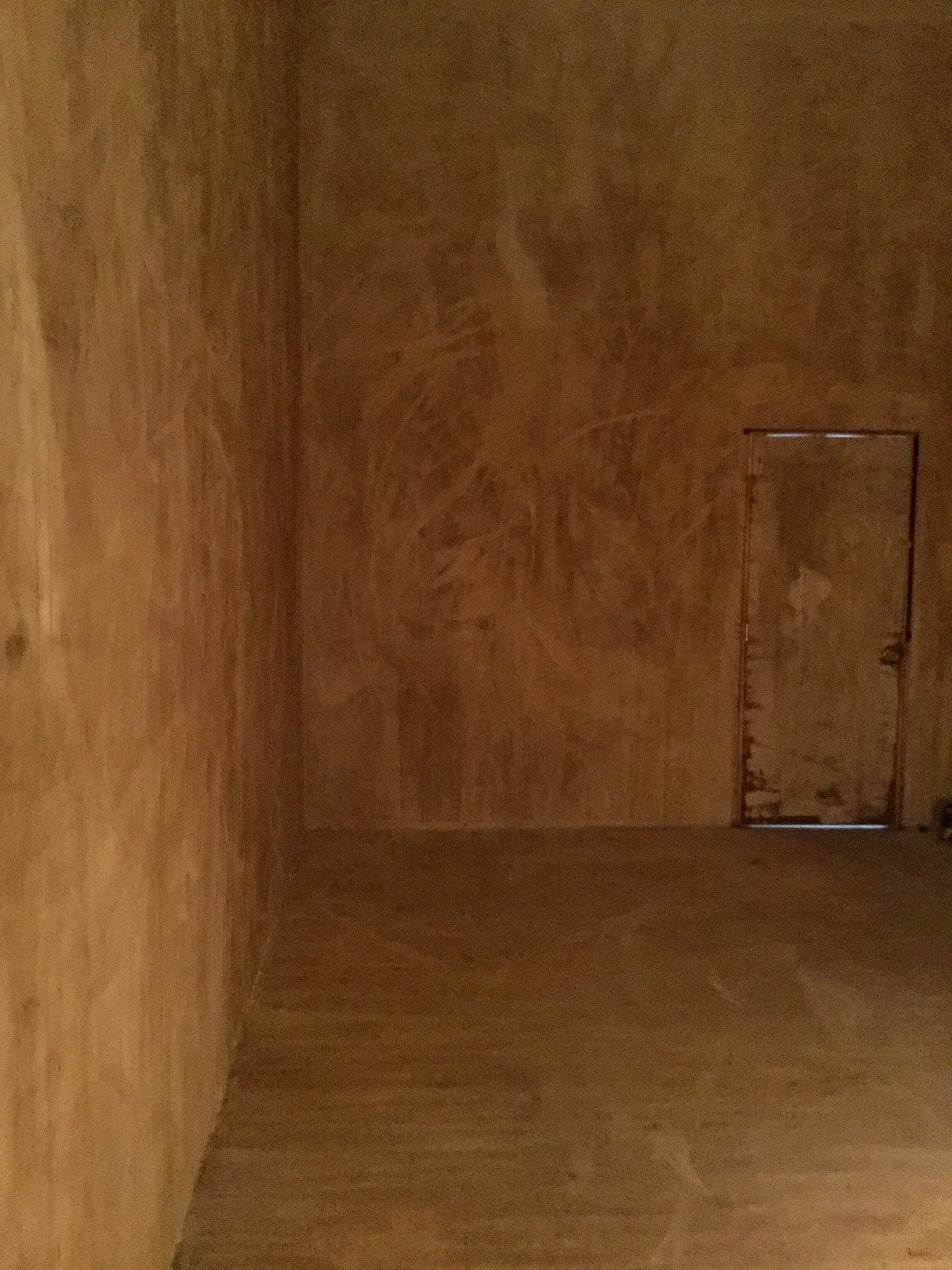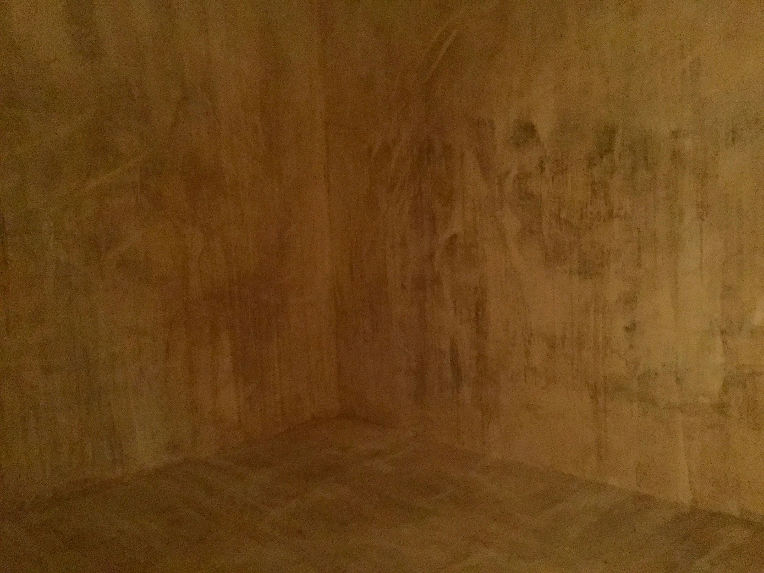 Viewers were asked not to speak, but were free to touch anything in the room. The walls were textured with etchings and dried salt, which acted as a low relief only experienced through touch.