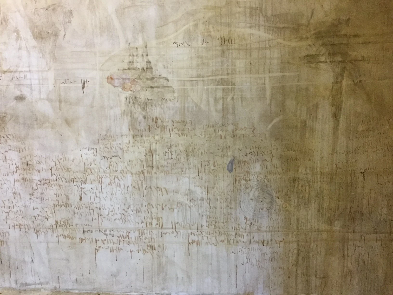 The performance was not preconceived but came to me in the moment. I had my materials in the room and as people started to enter the space, I began writing. I knelt on the ground working my way around the room in complete silence, never acknowledging those around me. I wrote in my own alphabet, a code that no one but myself can read.