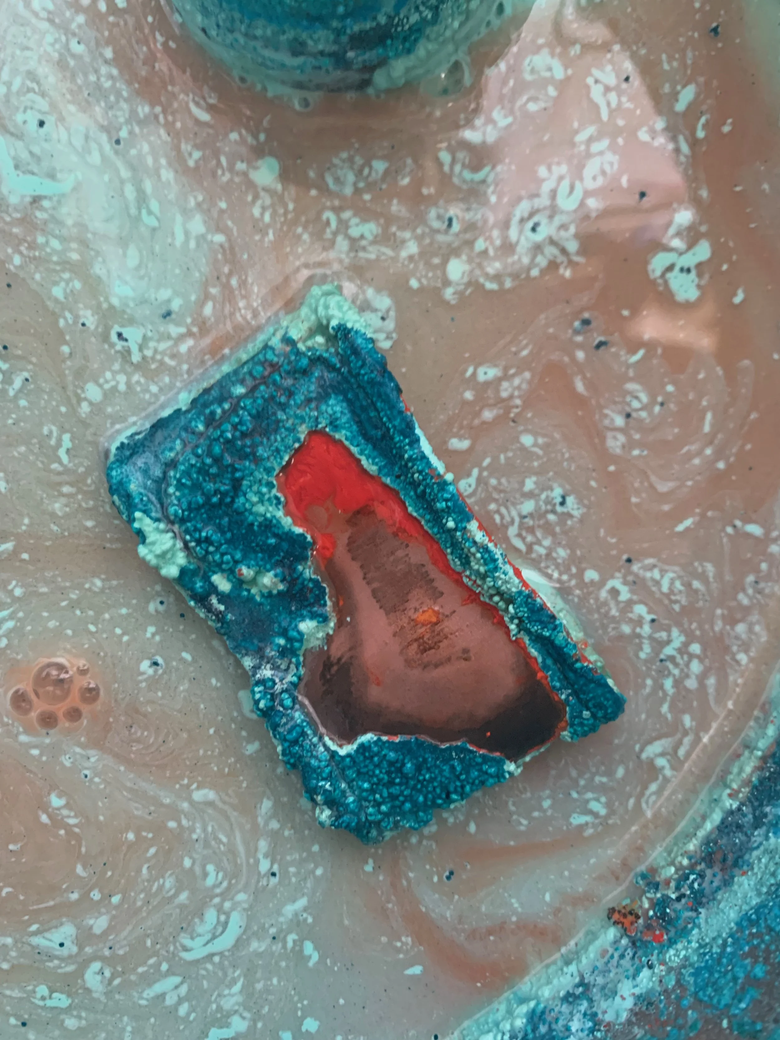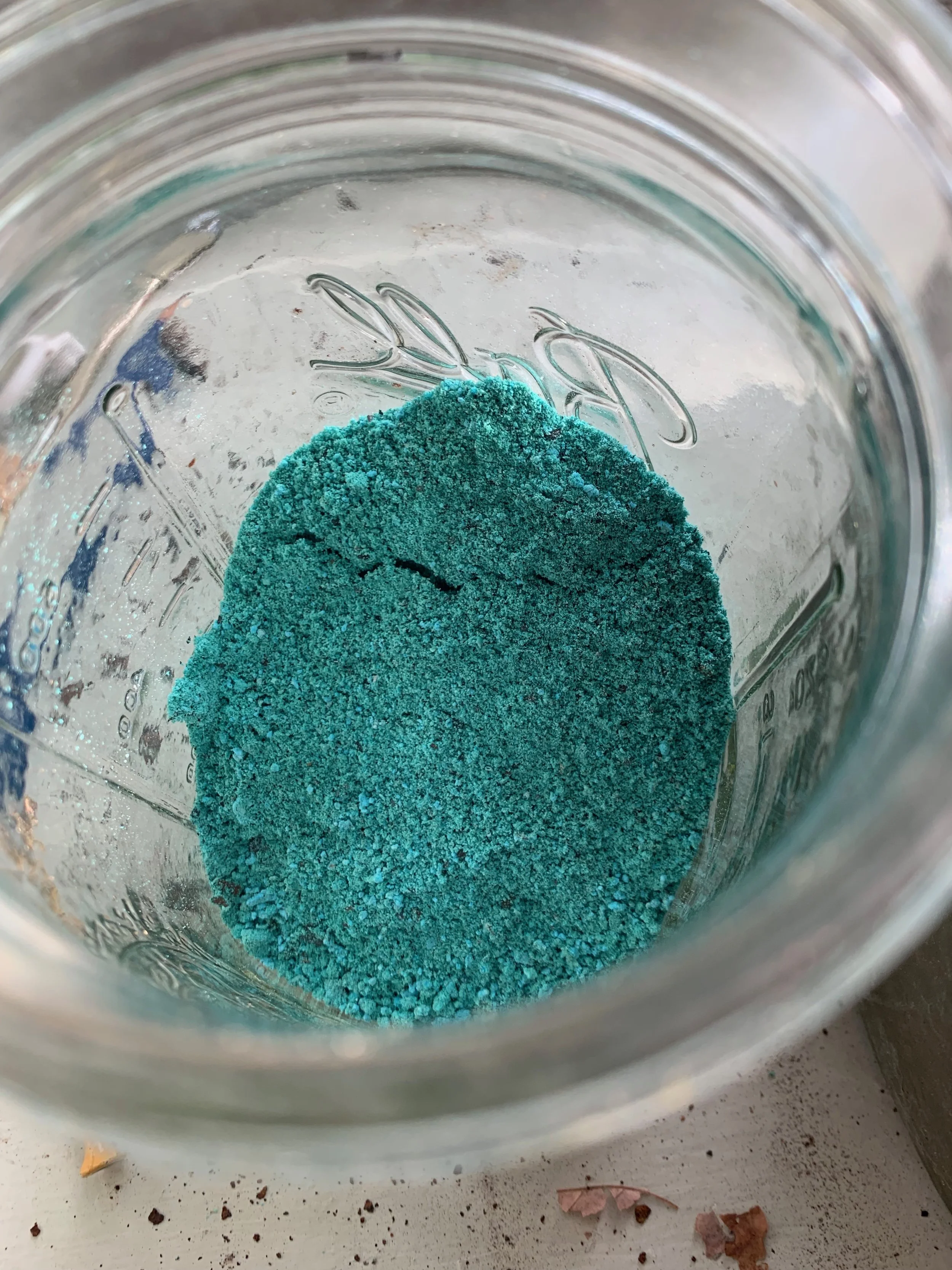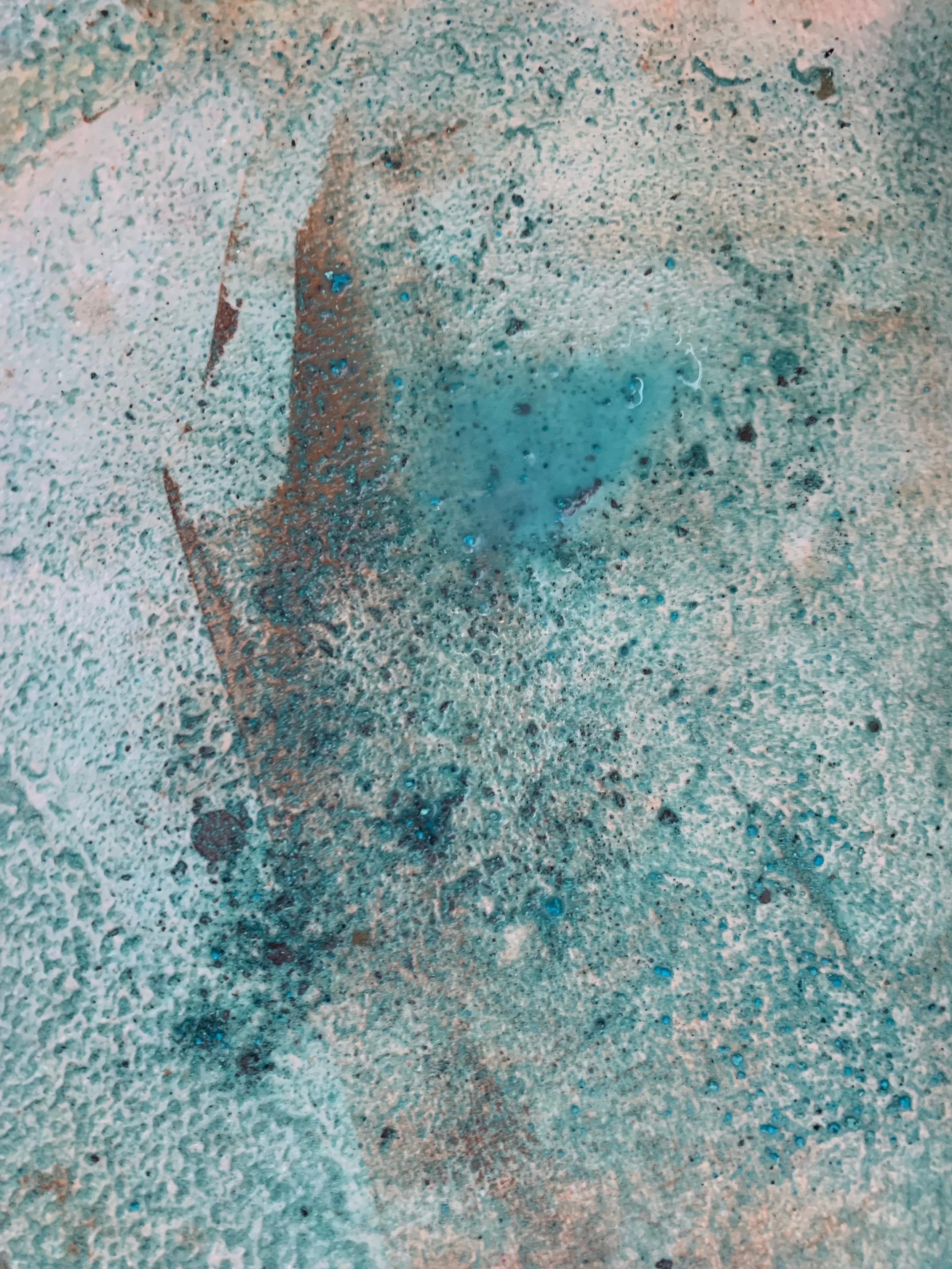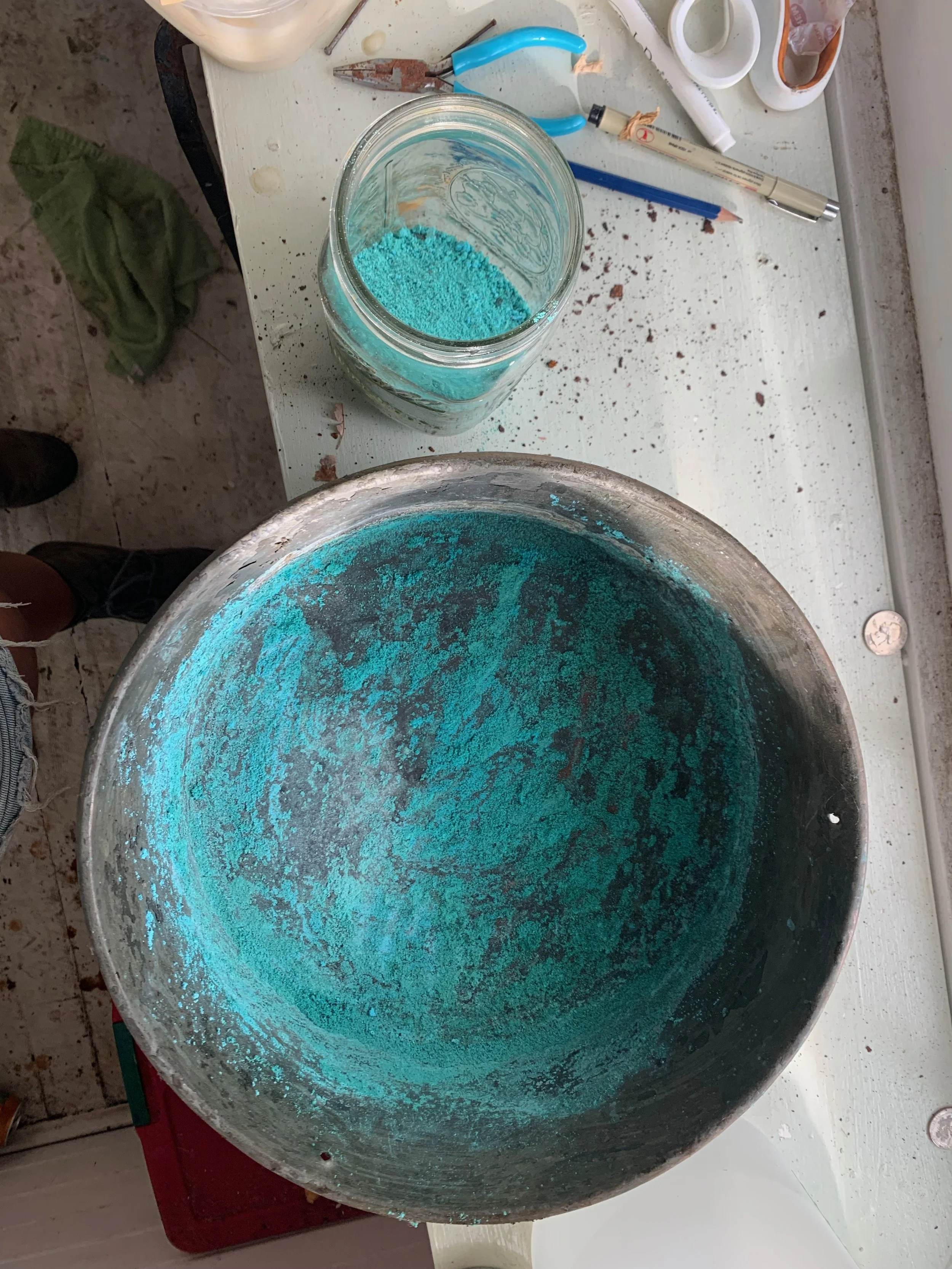 Experimenting with copper oxide and copper carbonate. The consistency is similar to that of paint. I am exploring the range of colours and how they behave over time.
