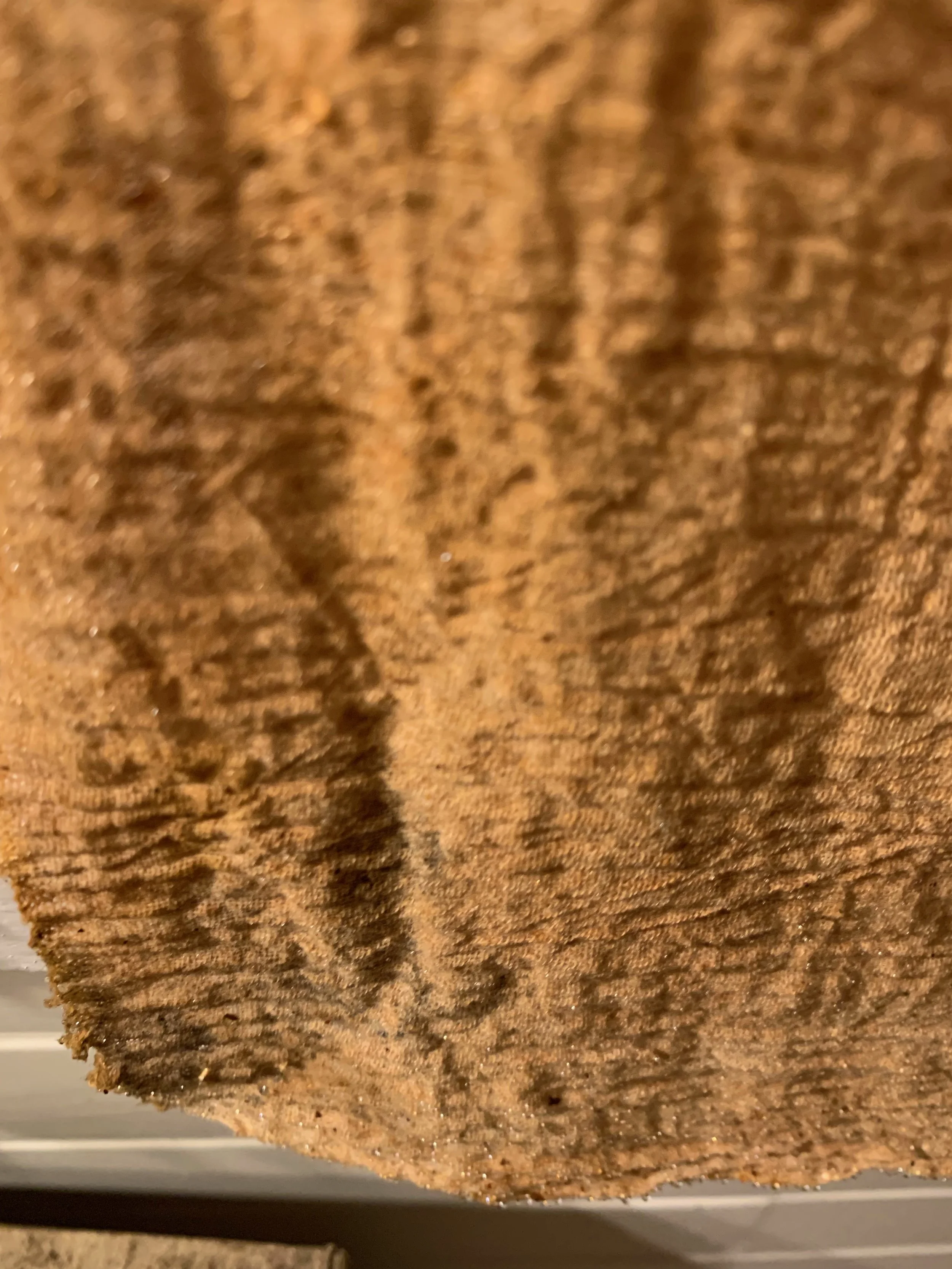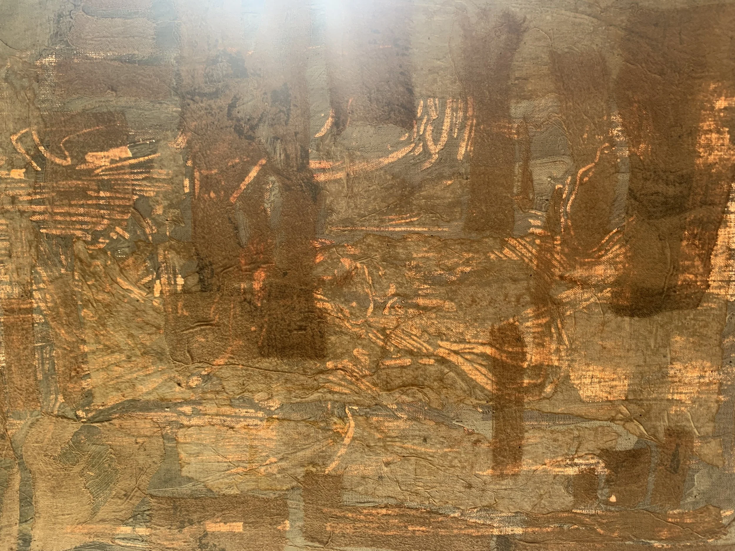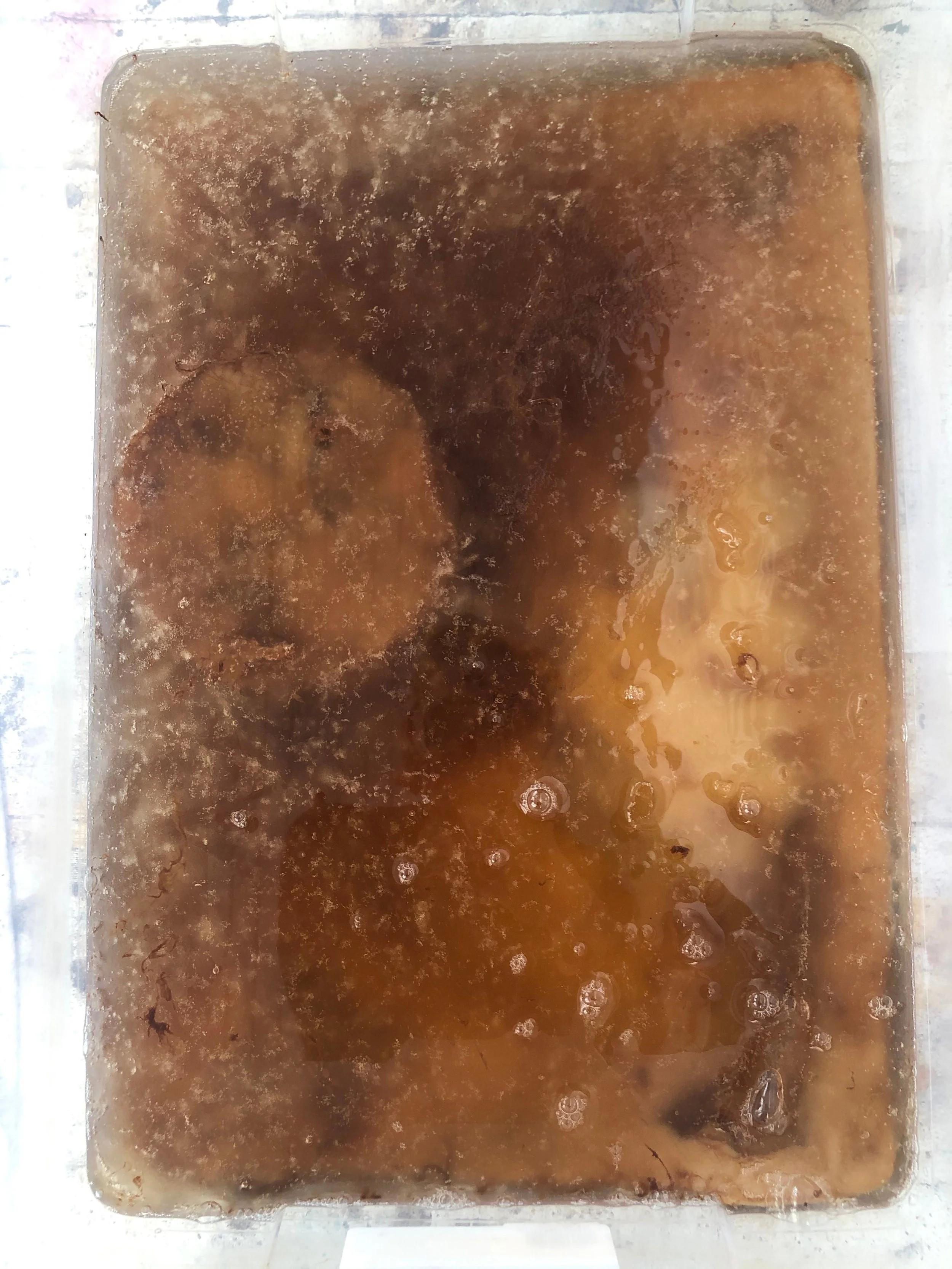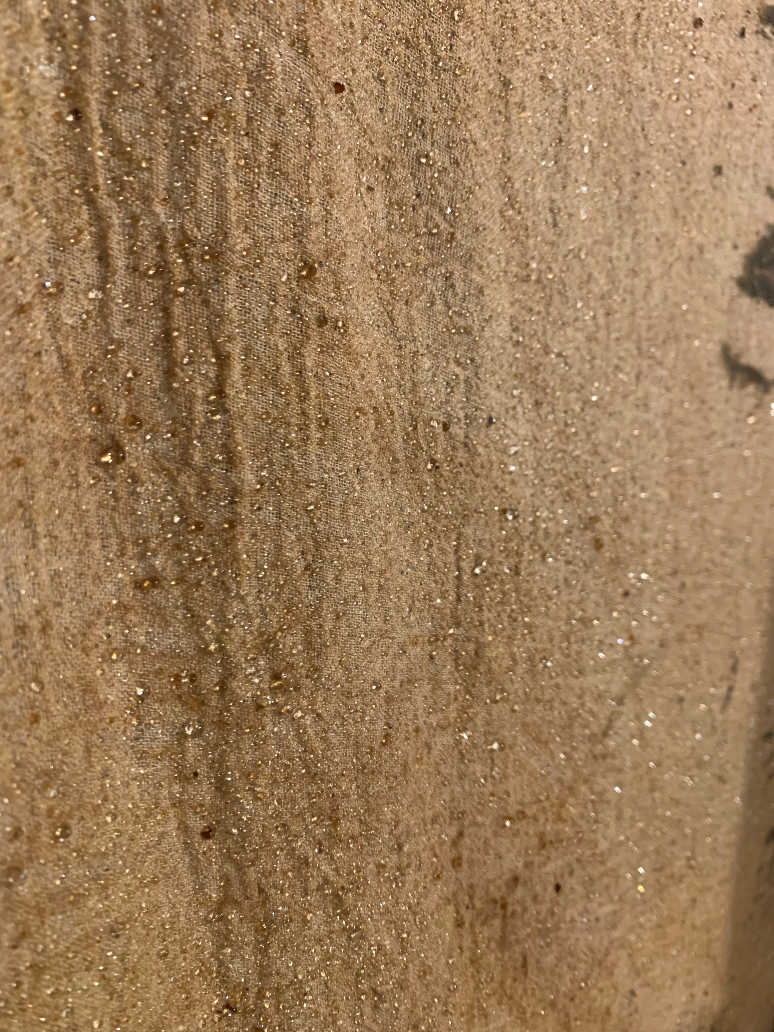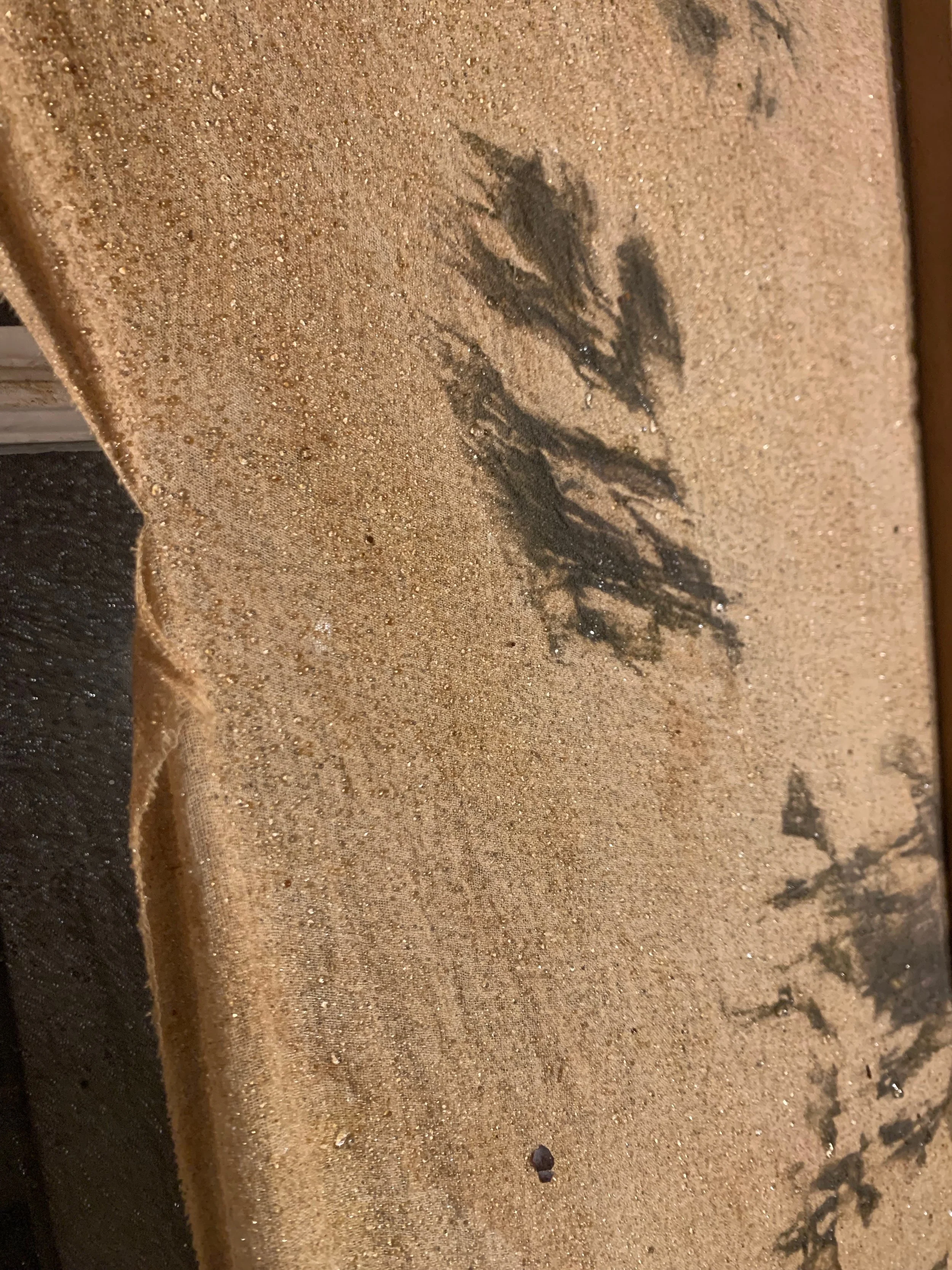 The images show fabric that has been soaked in liquid rust. The rust “ink” has a very high salinity. When the materials dry, they have a slightly textured surface.