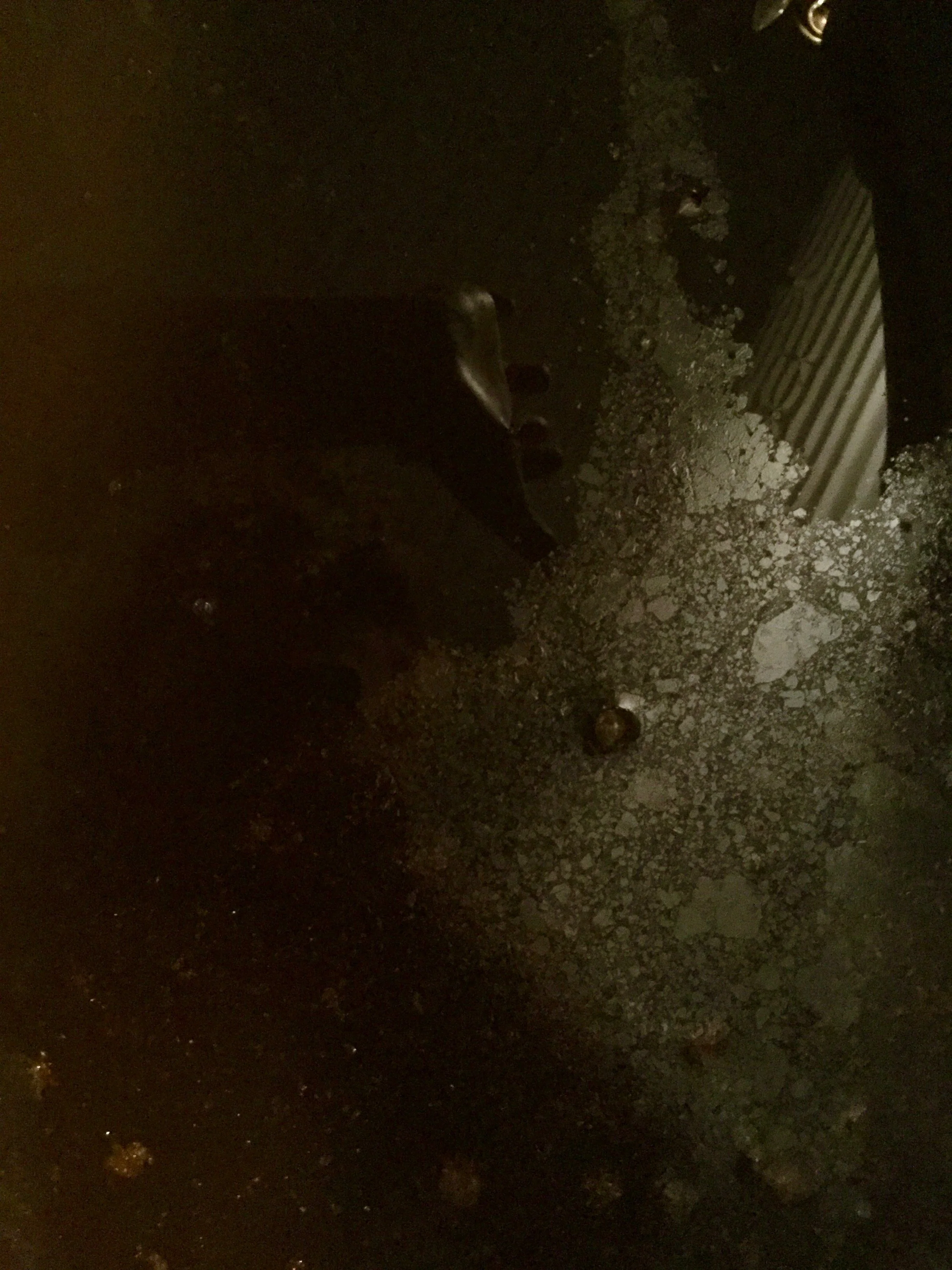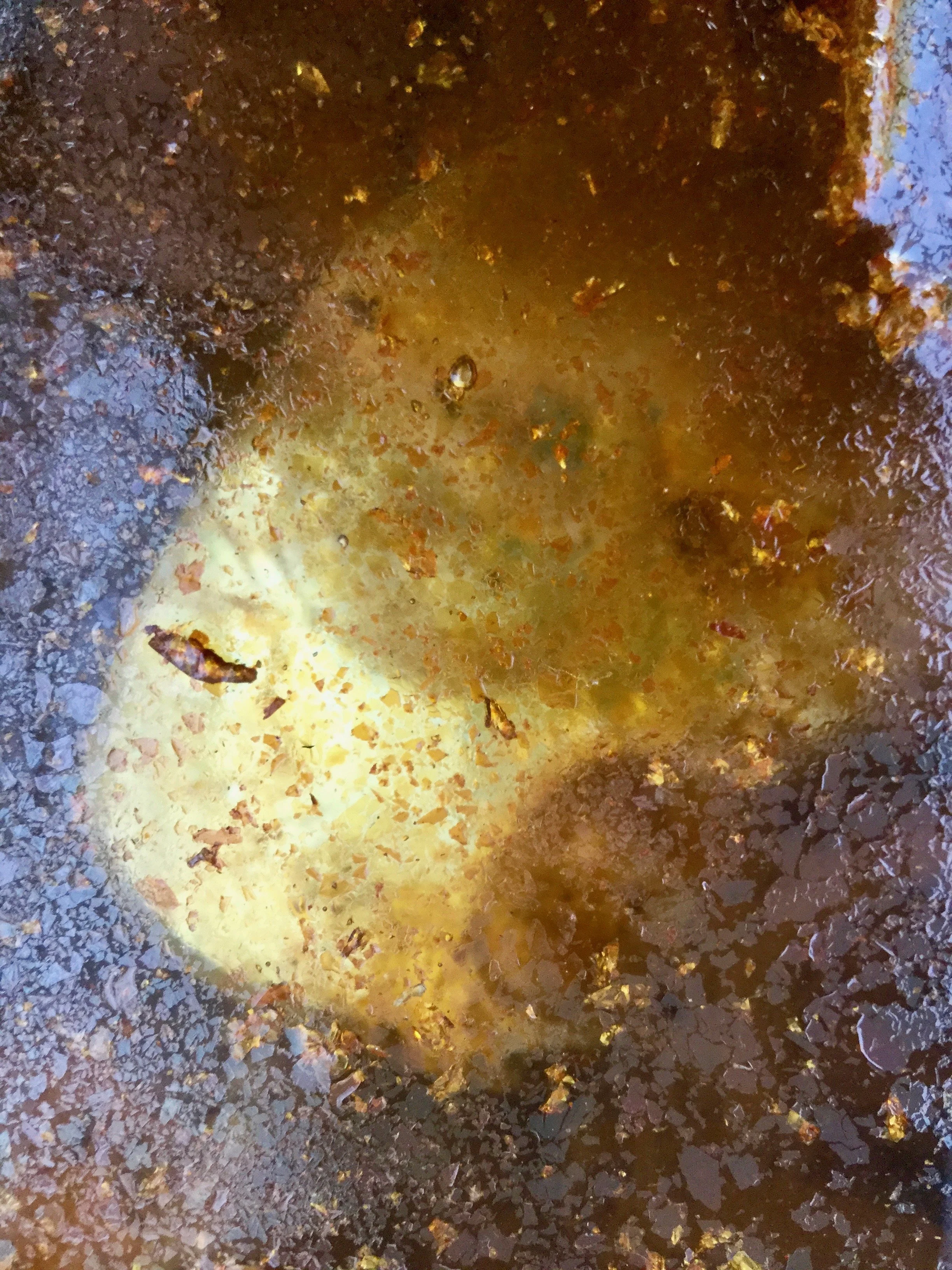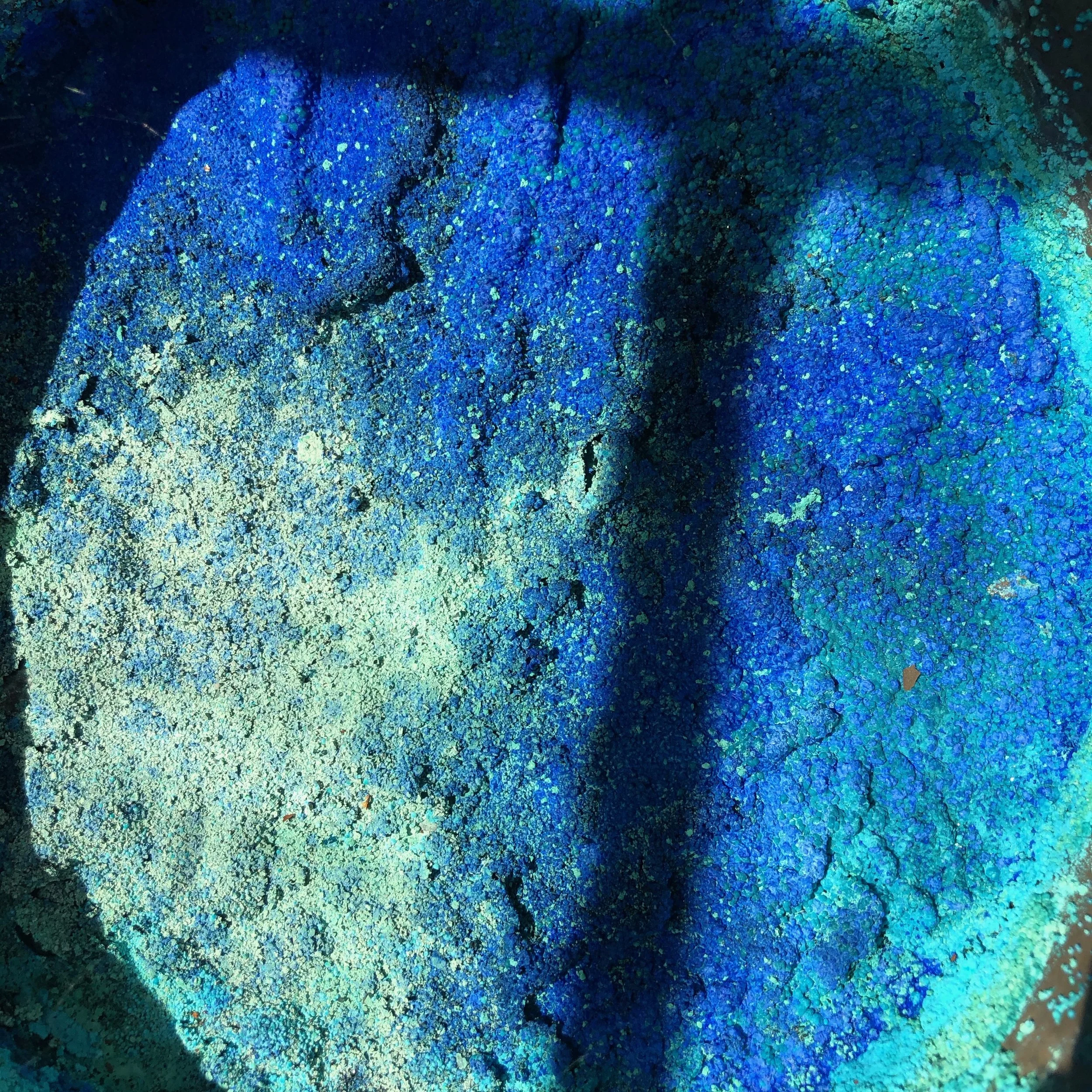 Rust, salt, metal fragments, mirror, and glass in water Aged 9 months